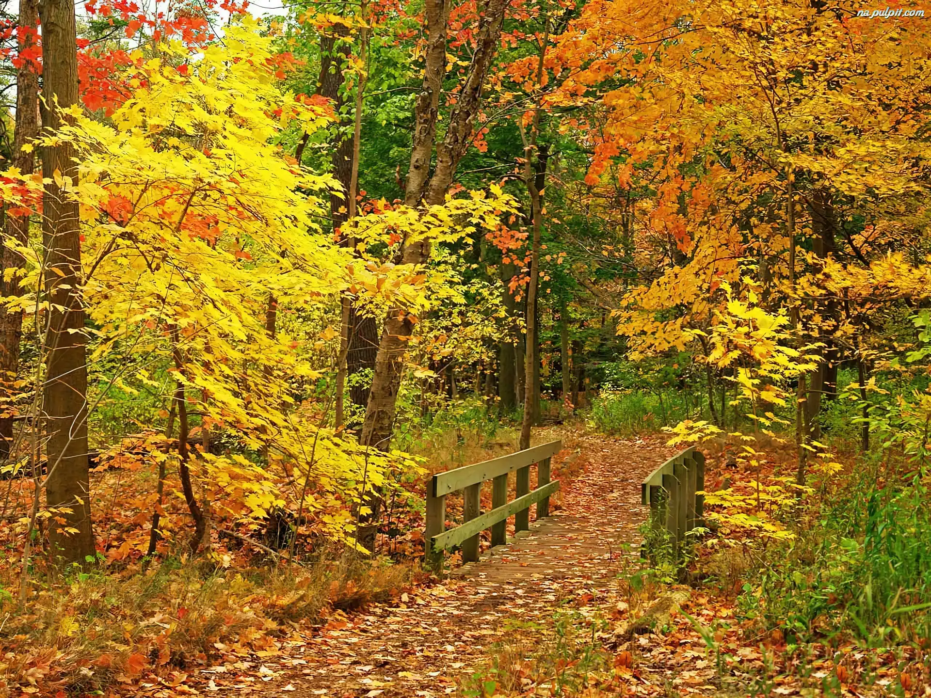 Jesień, Mostek, Las, Drzewa Na Pulpit