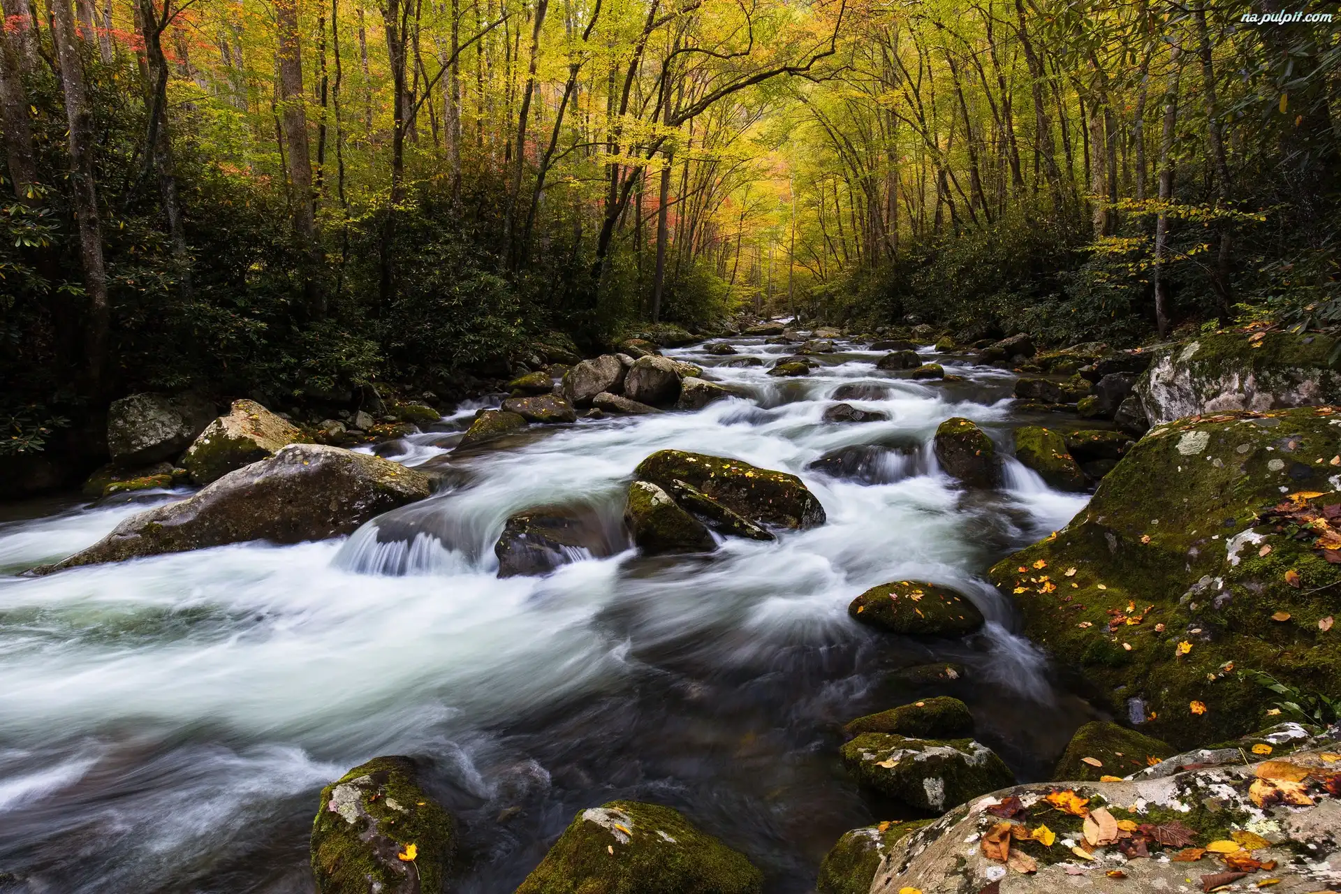 Jesień, Rzeka, Las, Kamienie