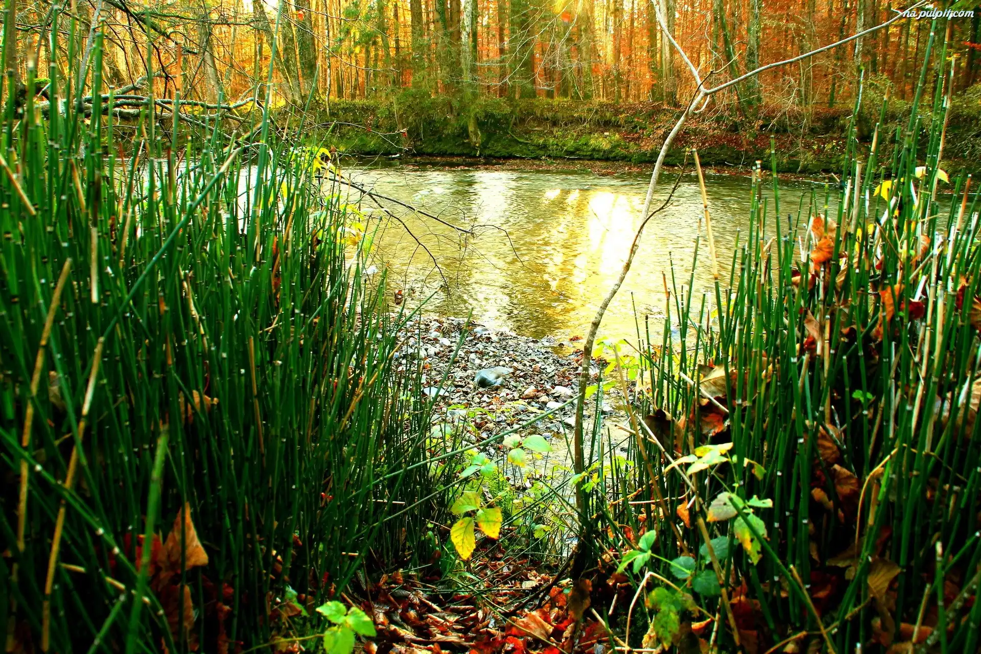 Jesień, Rzeka, Las, Rośliny Na Pulpit