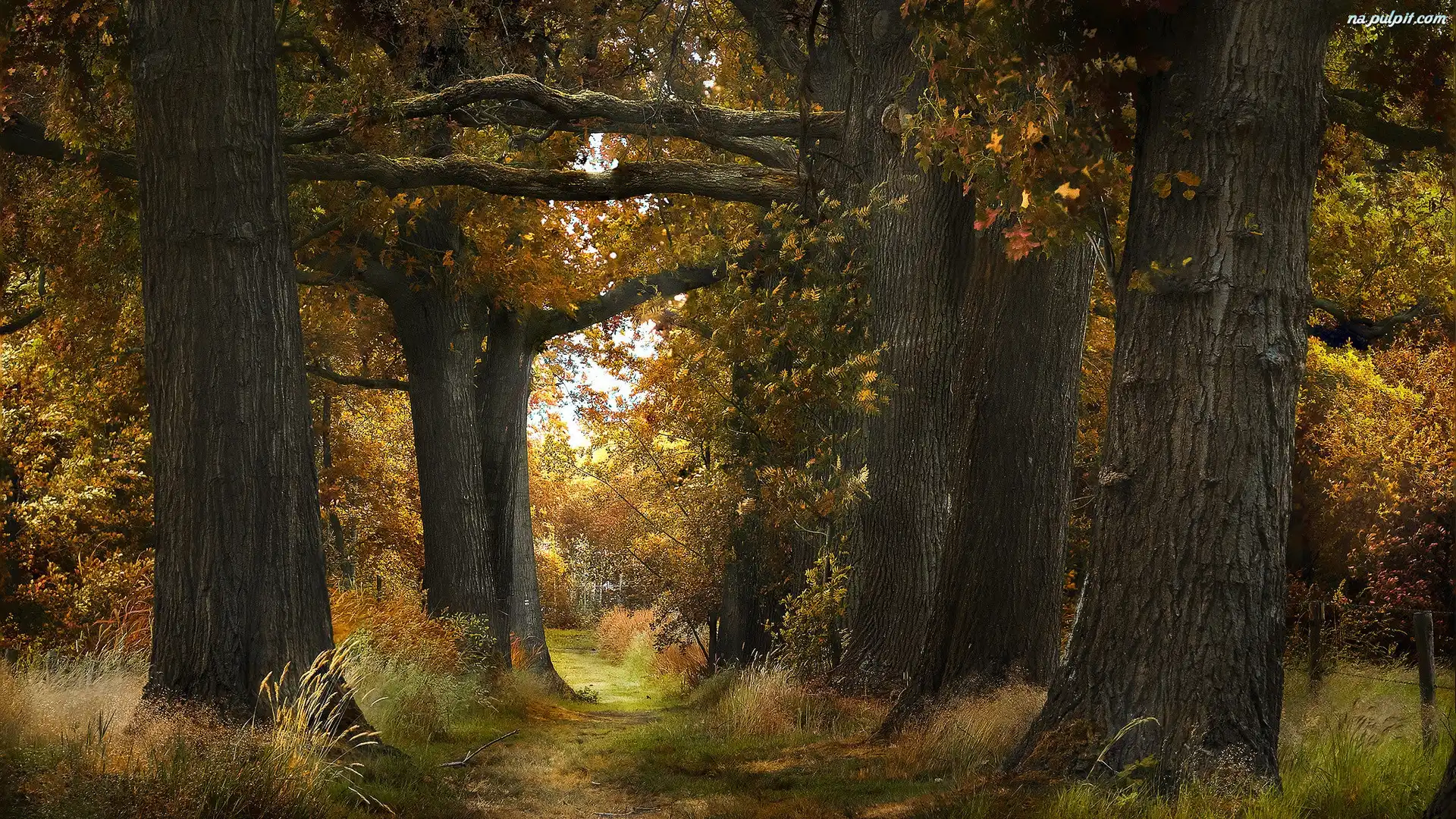 Drzewa, Jesień, Las, Trawa, Żółte Na Pulpit