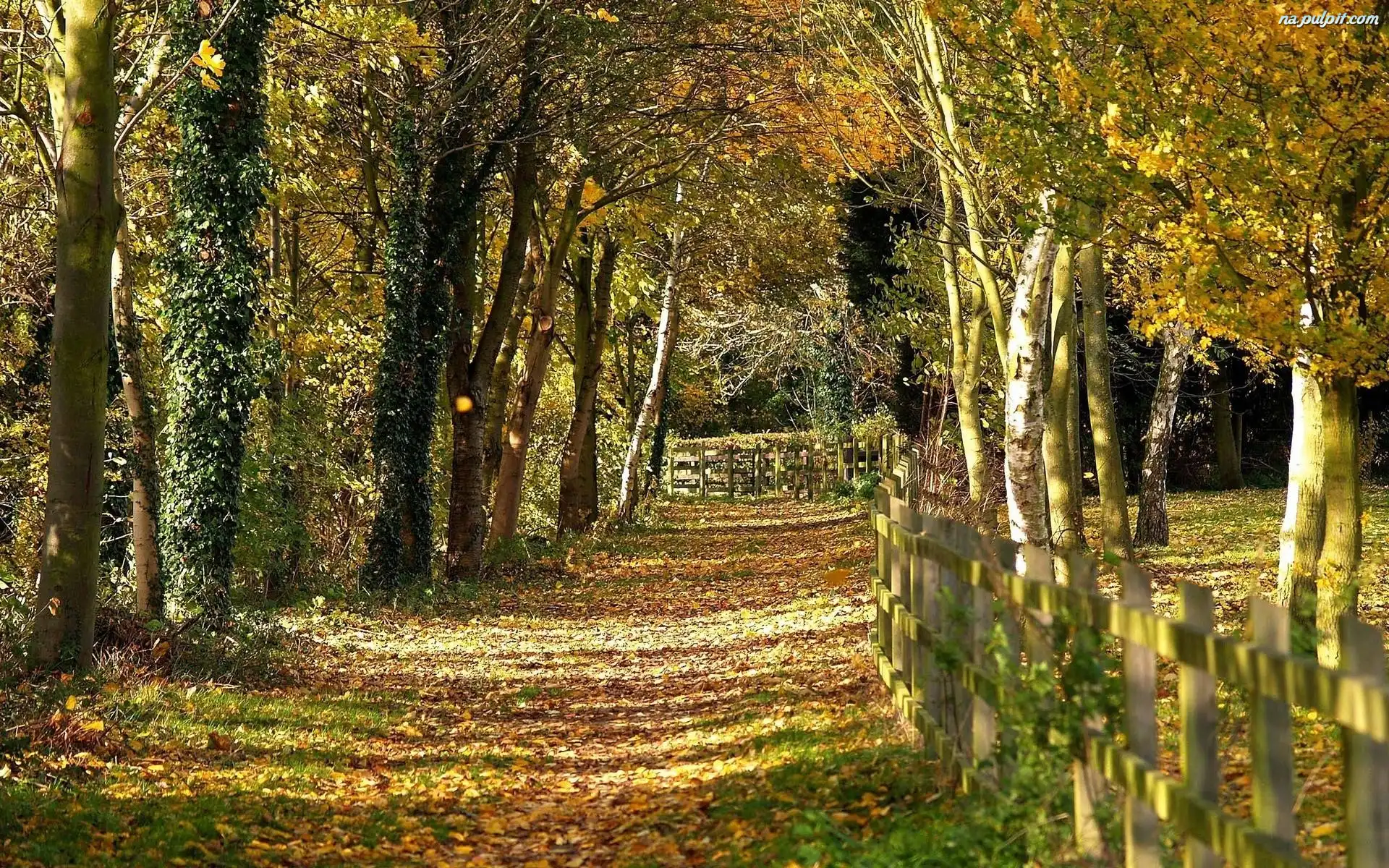 Jesień, Dróżka, Leśna, Ogrodzenie Na Pulpit