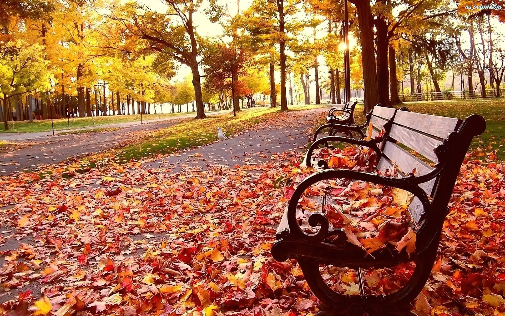 Ławeczka, Liście, Jesień, Park Na Pulpit