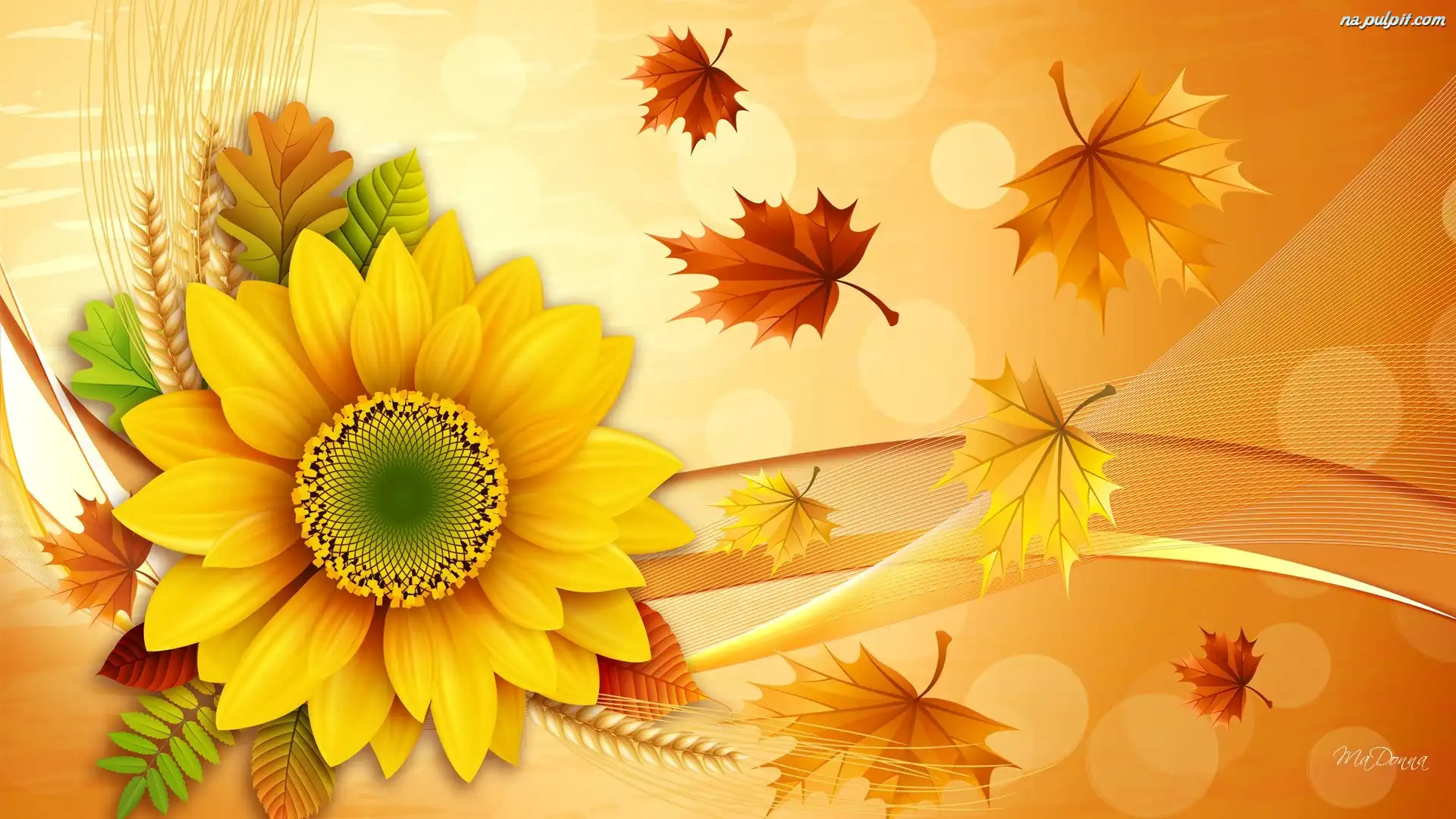 Liście, Jesień, Słonecznik Na Pulpit