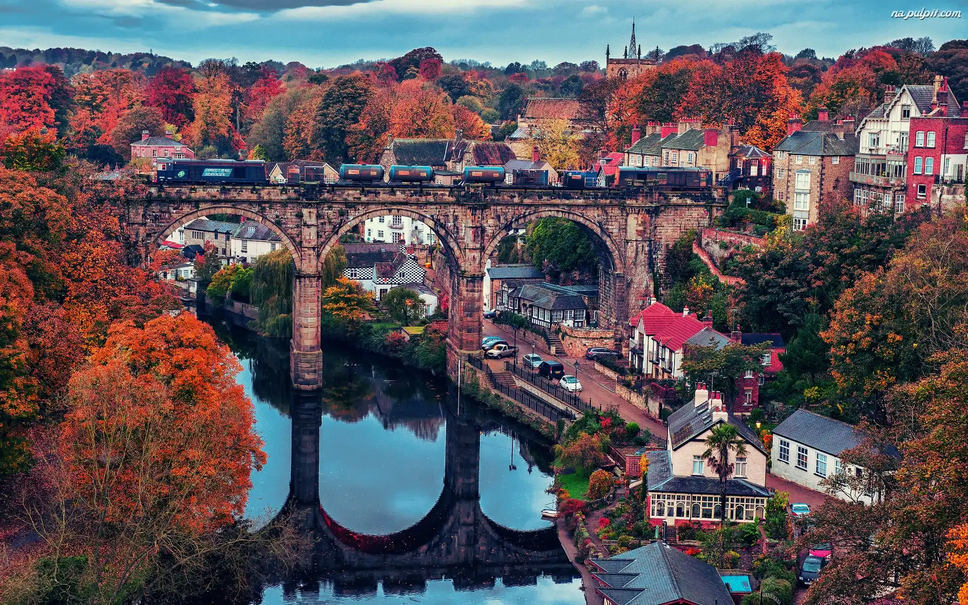 Jesień, Most, Miasteczko, Rzeka Na Pulpit