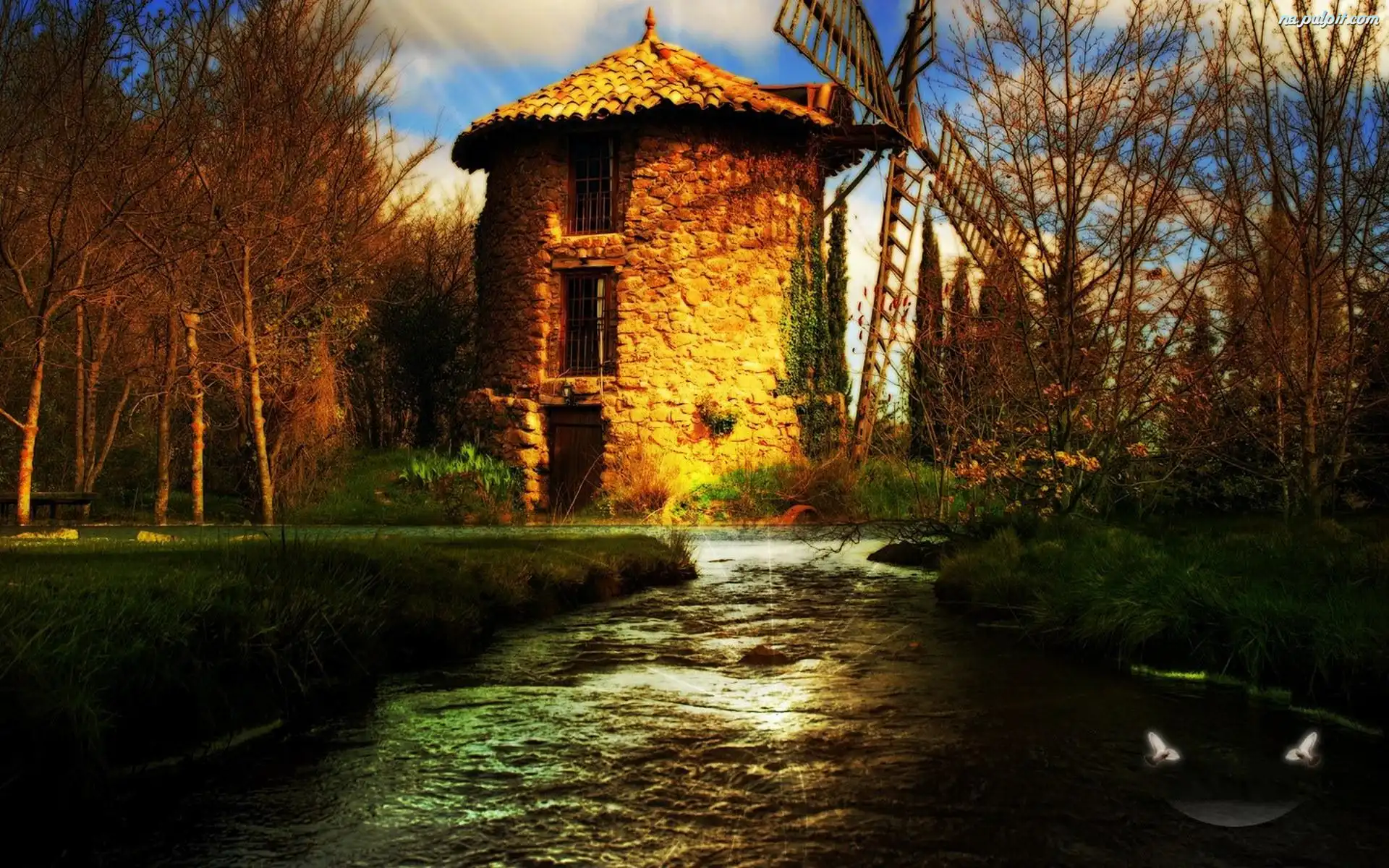 Jesień, Wodny, Młyn, Rzeka Na Pulpit