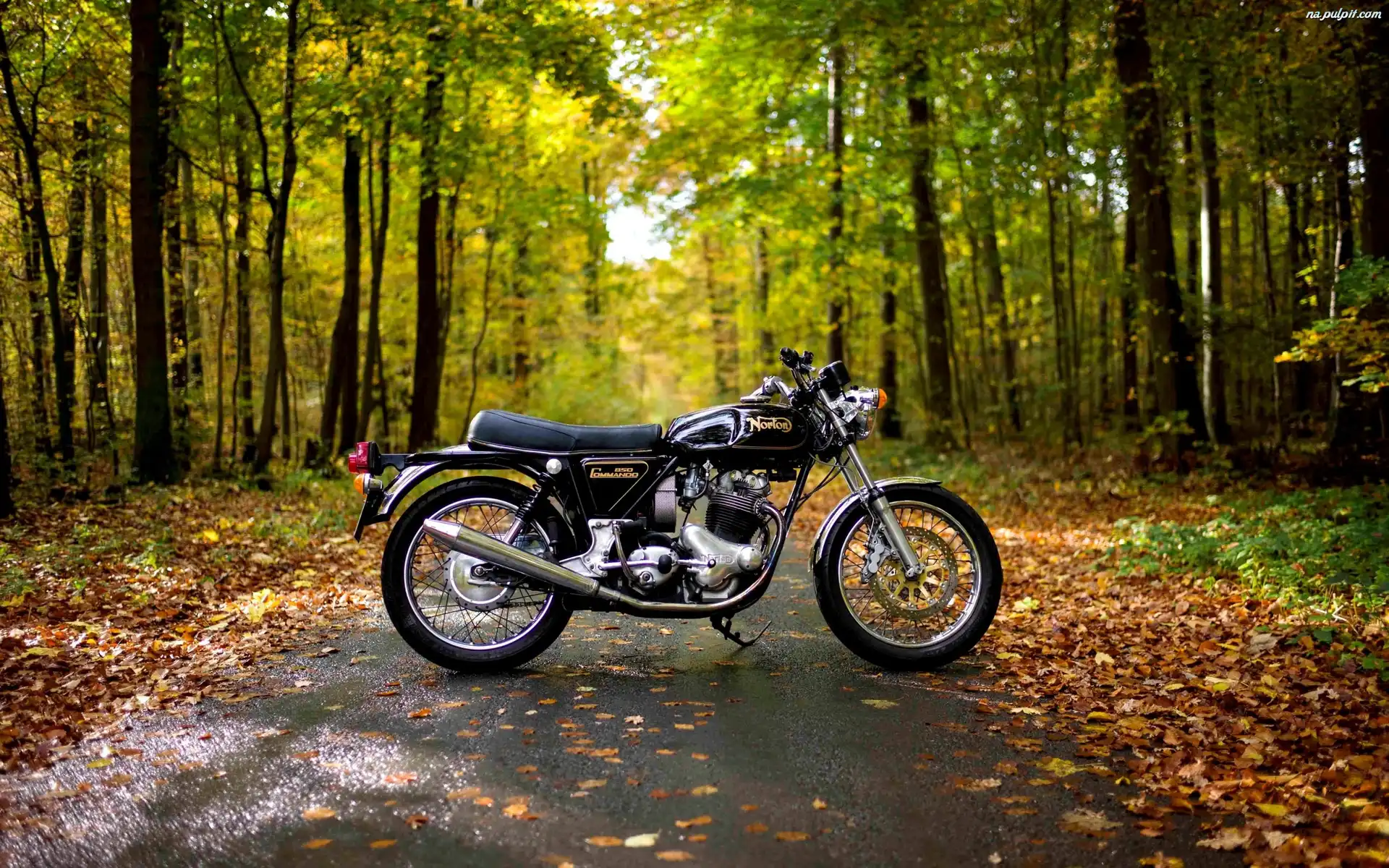 Jesień, Droga, Las, Motocykl, Liście Na Pulpit