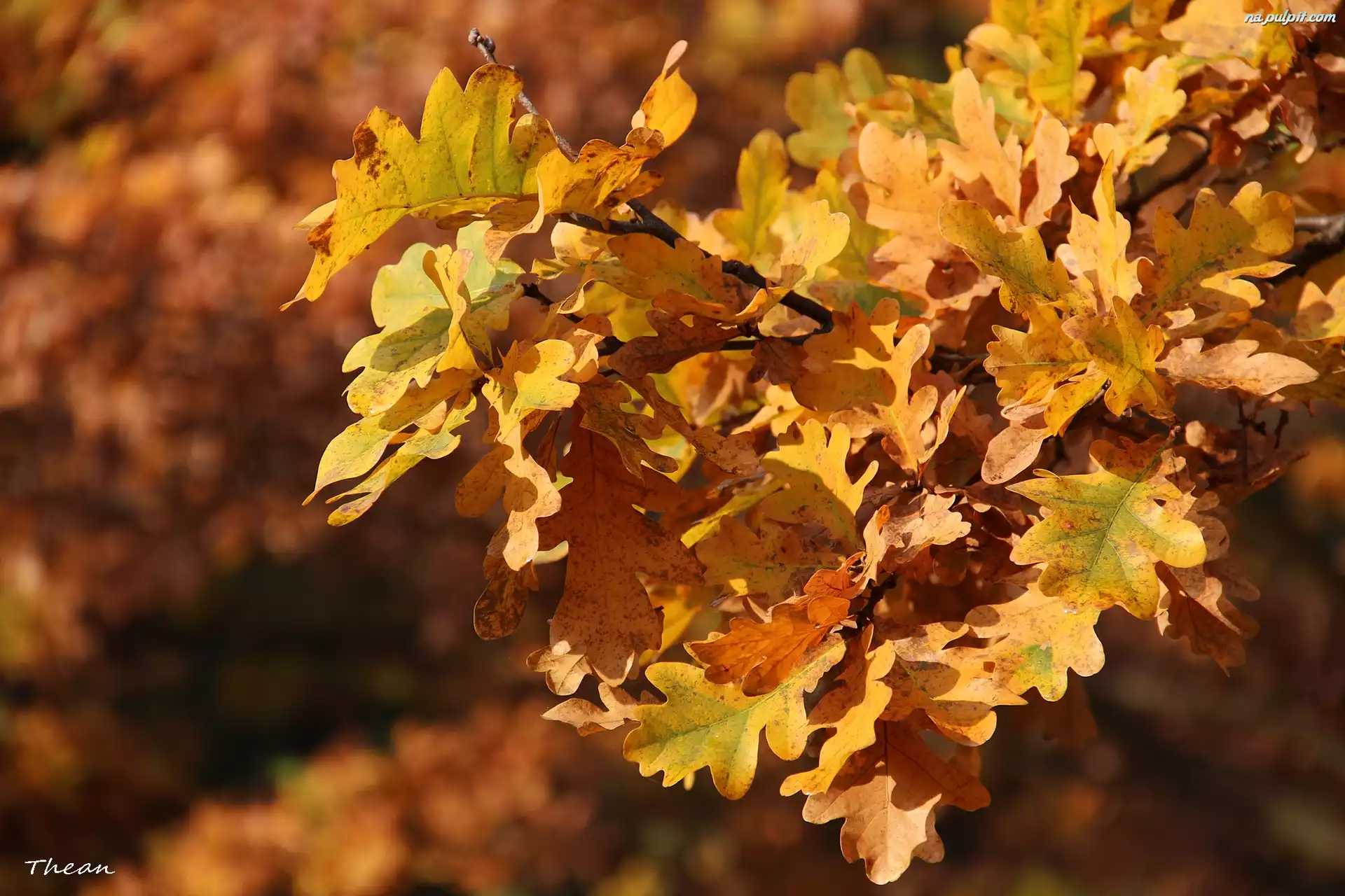 Jesień, Liście, Brązowe, Żółto, Dębu Na Pulpit