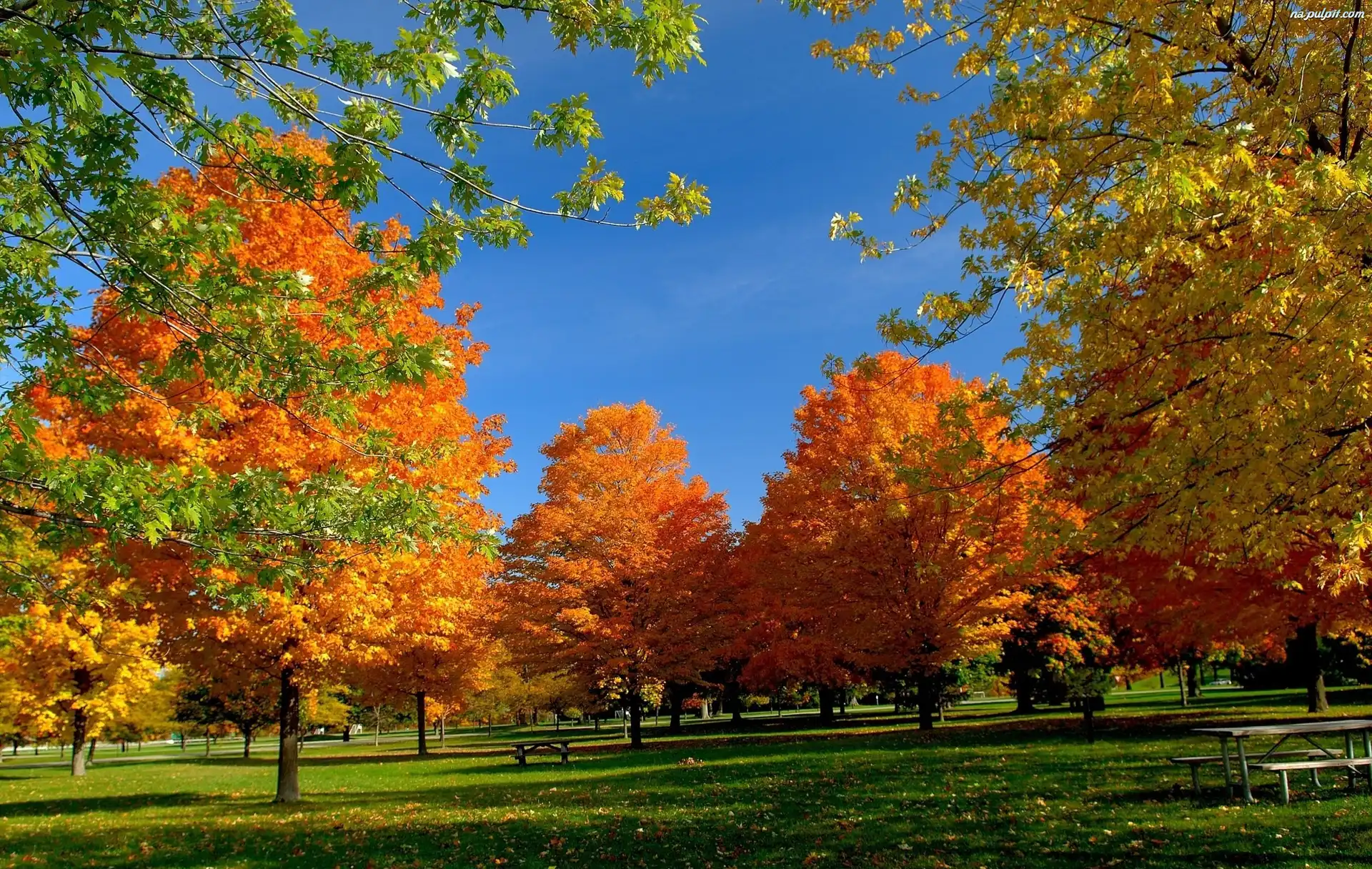 Ławka, Park, Jesień, Drzewa Na Pulpit