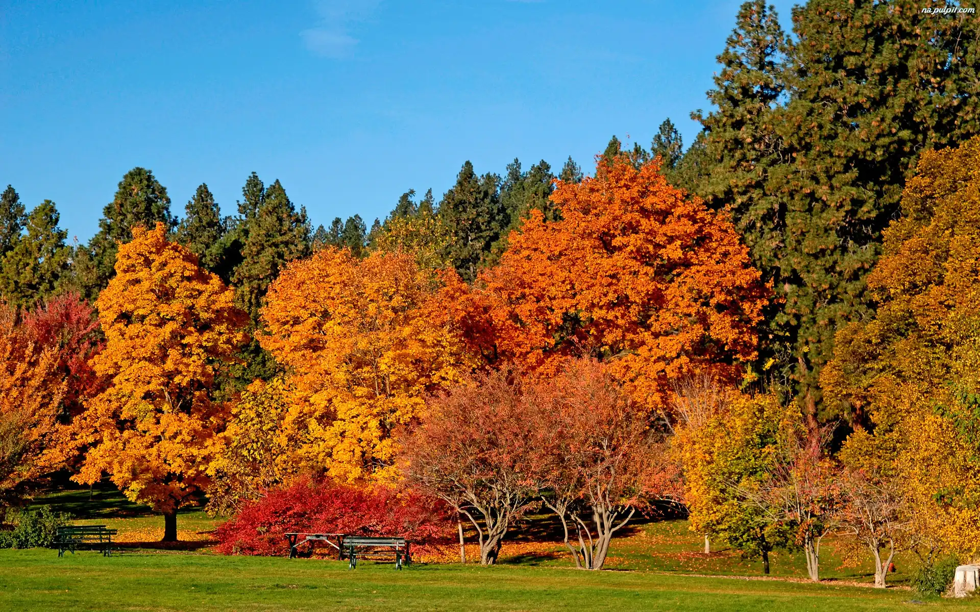 Ławka, Park, Jesień, Drzewa Na Pulpit