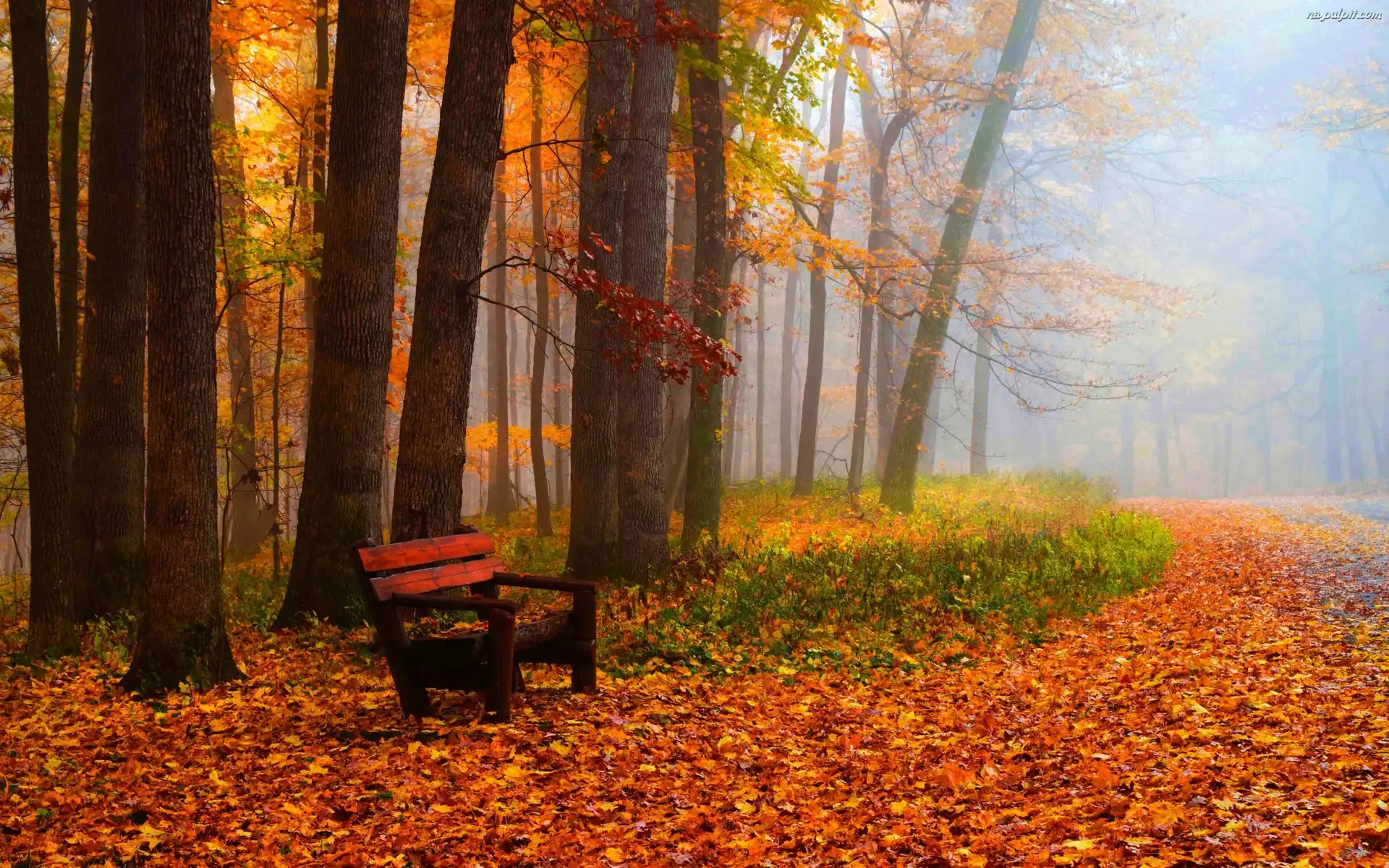 Ławka, Park, Jesień, Mgła Na Pulpit