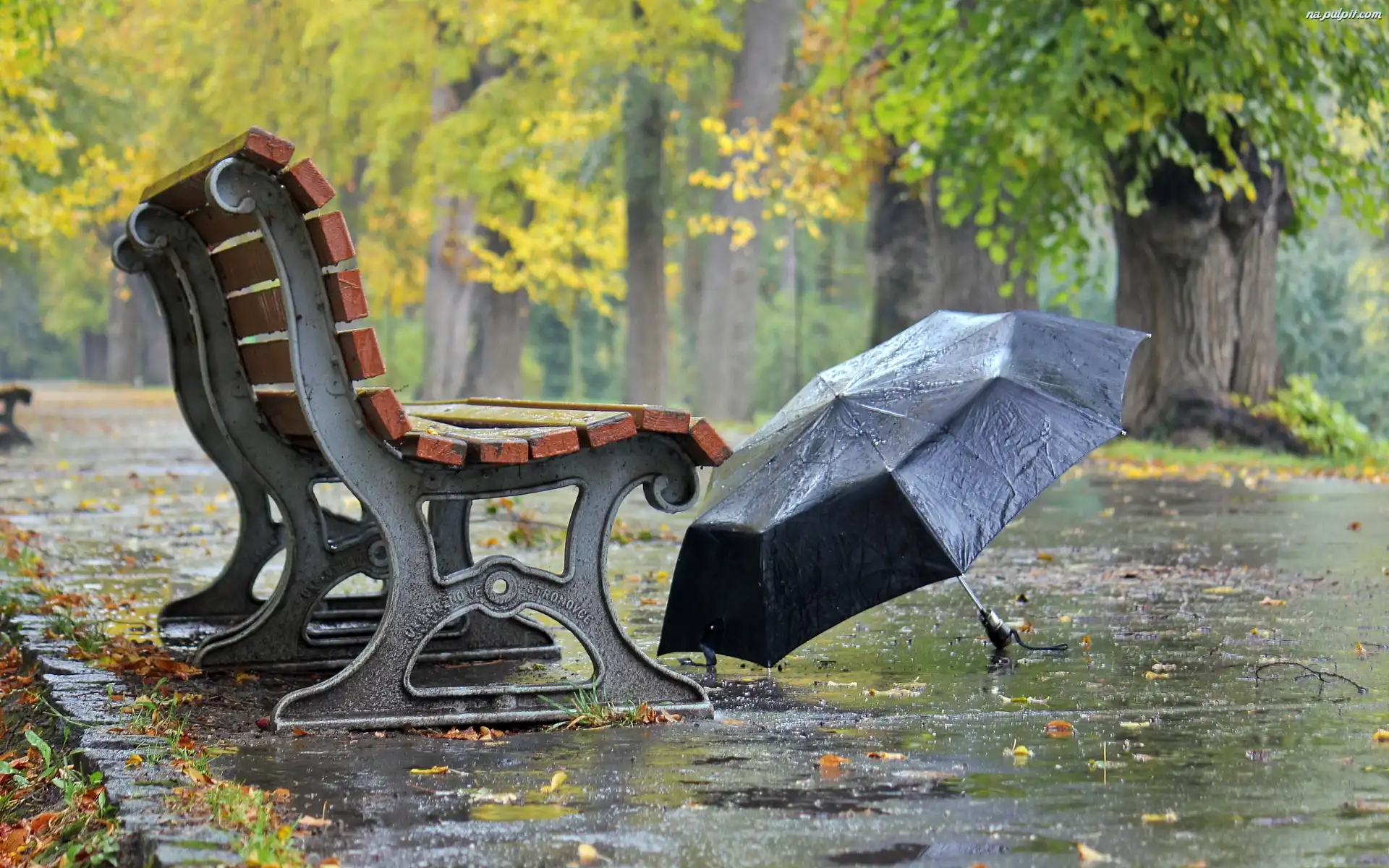 Jesień, Ławka, Park, Parasol Na Pulpit