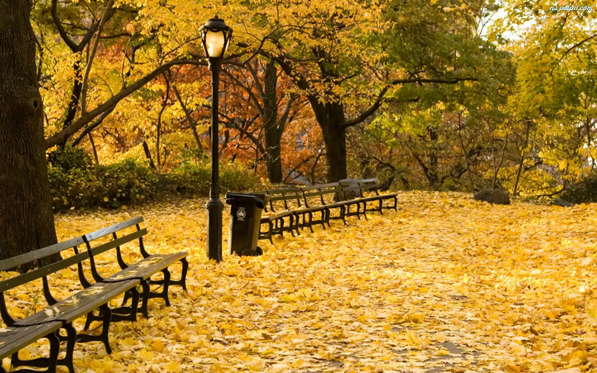 Jesień, Ławki, Park, Liście Na Pulpit