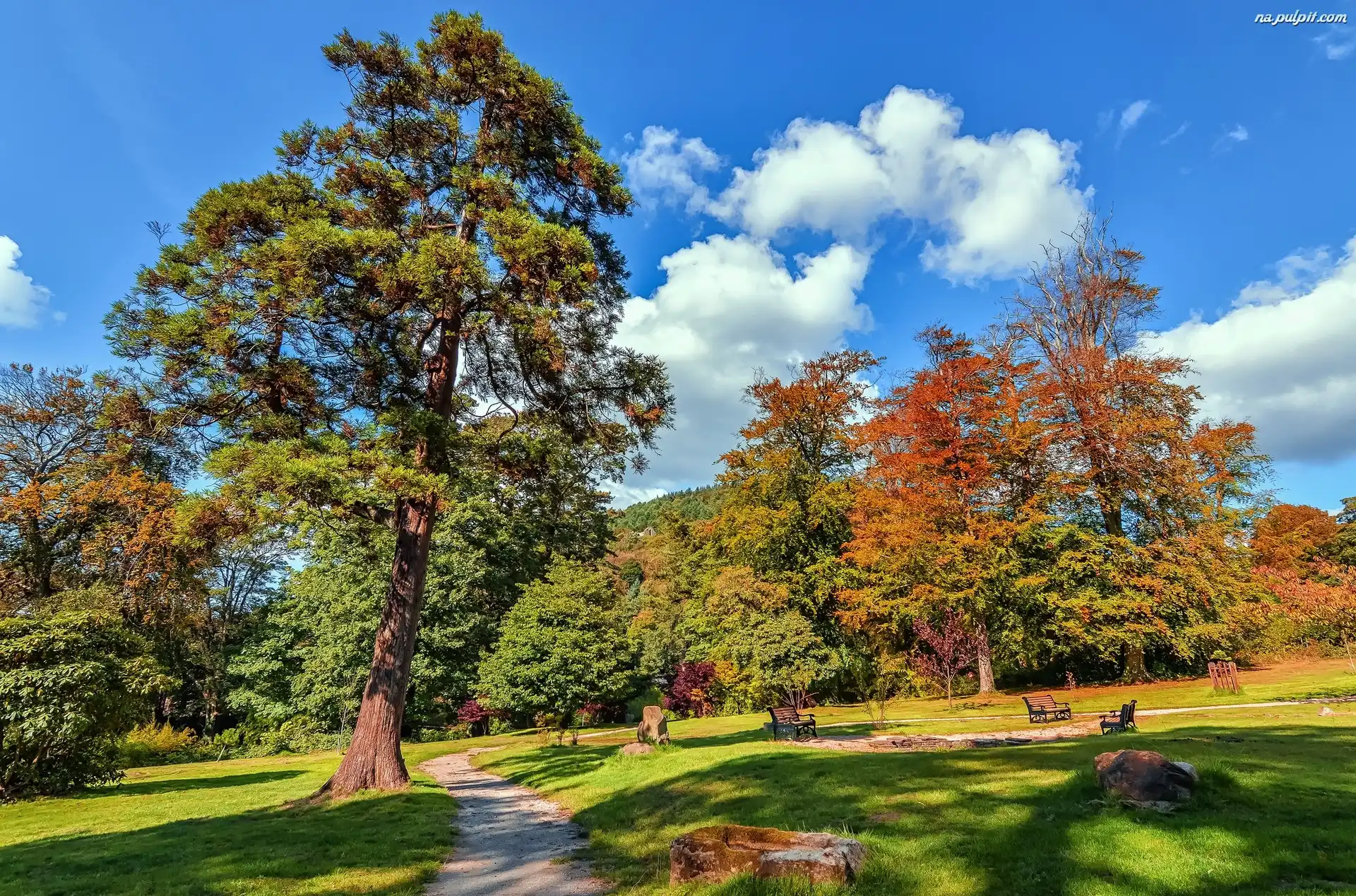 Ścieżka, Park, Jesień, Drzewa Na Pulpit
