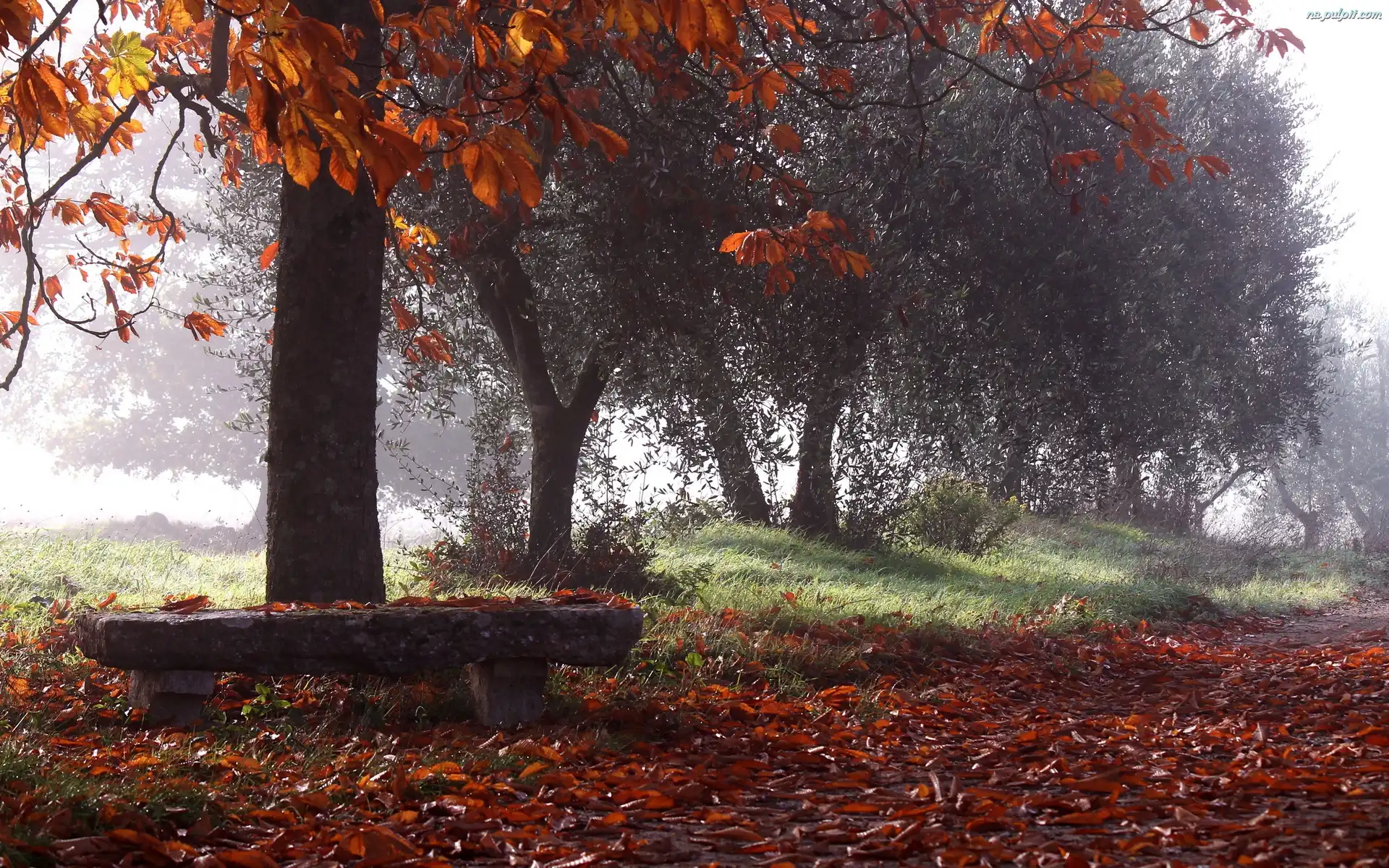 Jesień, Droga, Drzewa, Park, Mgła Na Pulpit