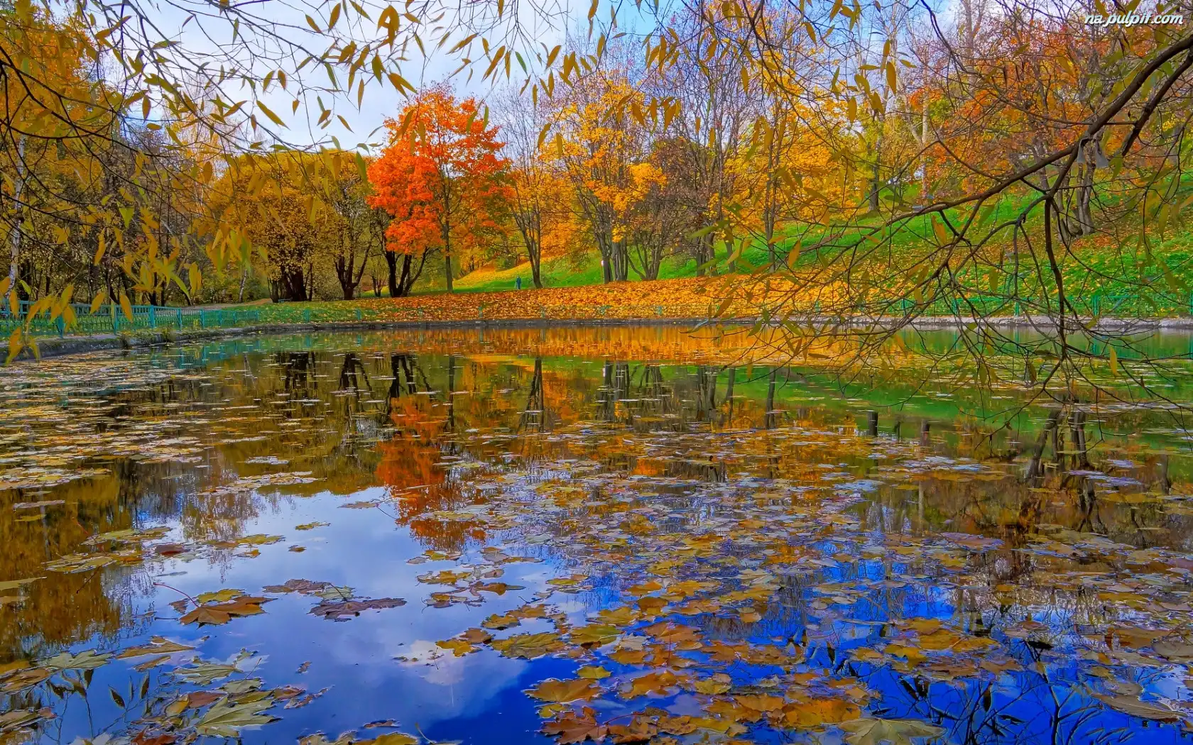 Jesień, Staw, Drzewa, Park, Liście Na Pulpit