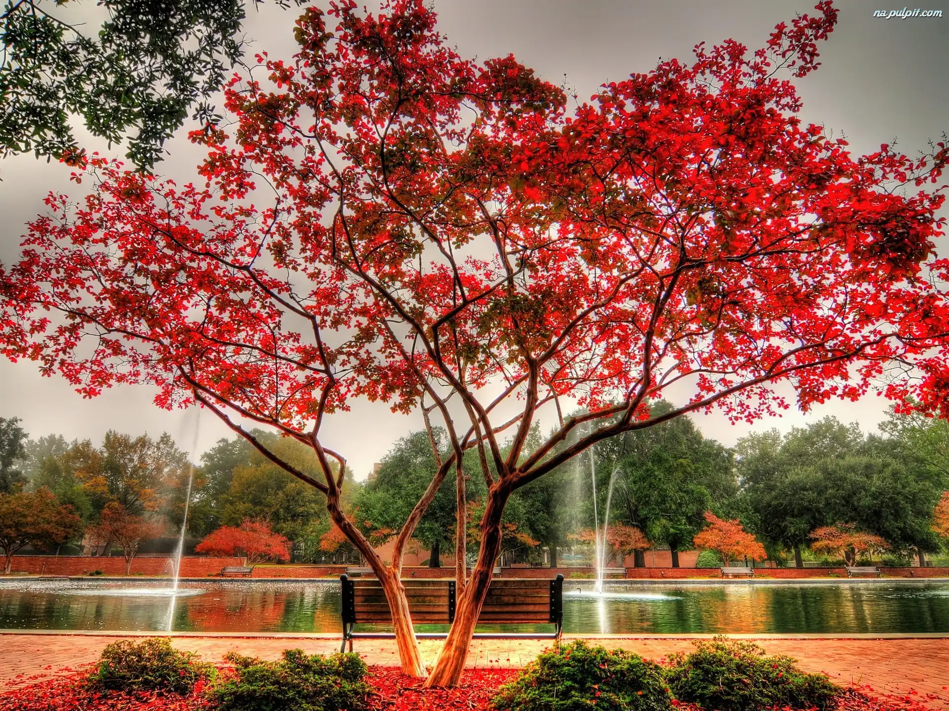Jesień, Drzewo, Park, Ławka Na Pulpit