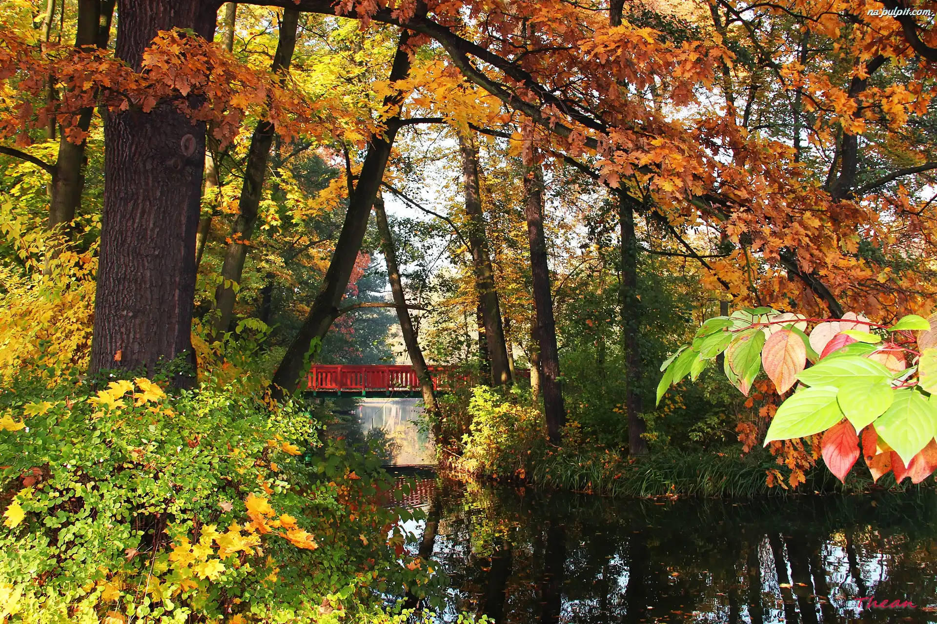 Jesień, Most, Jezoro, Kolorowe, Park, Liście Na Pulpit