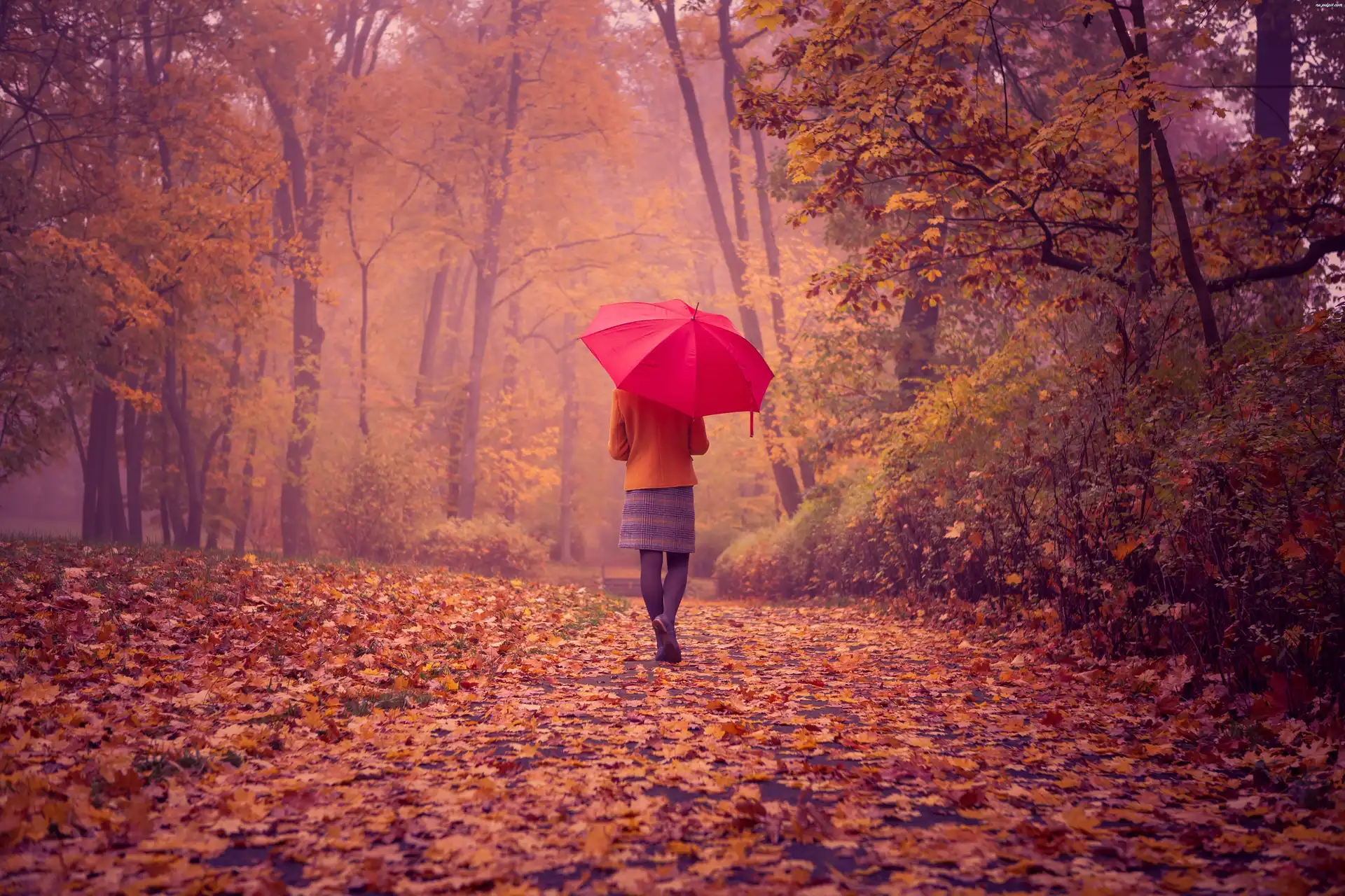 Jesień, Kobieta, Park, Liście Na Pulpit