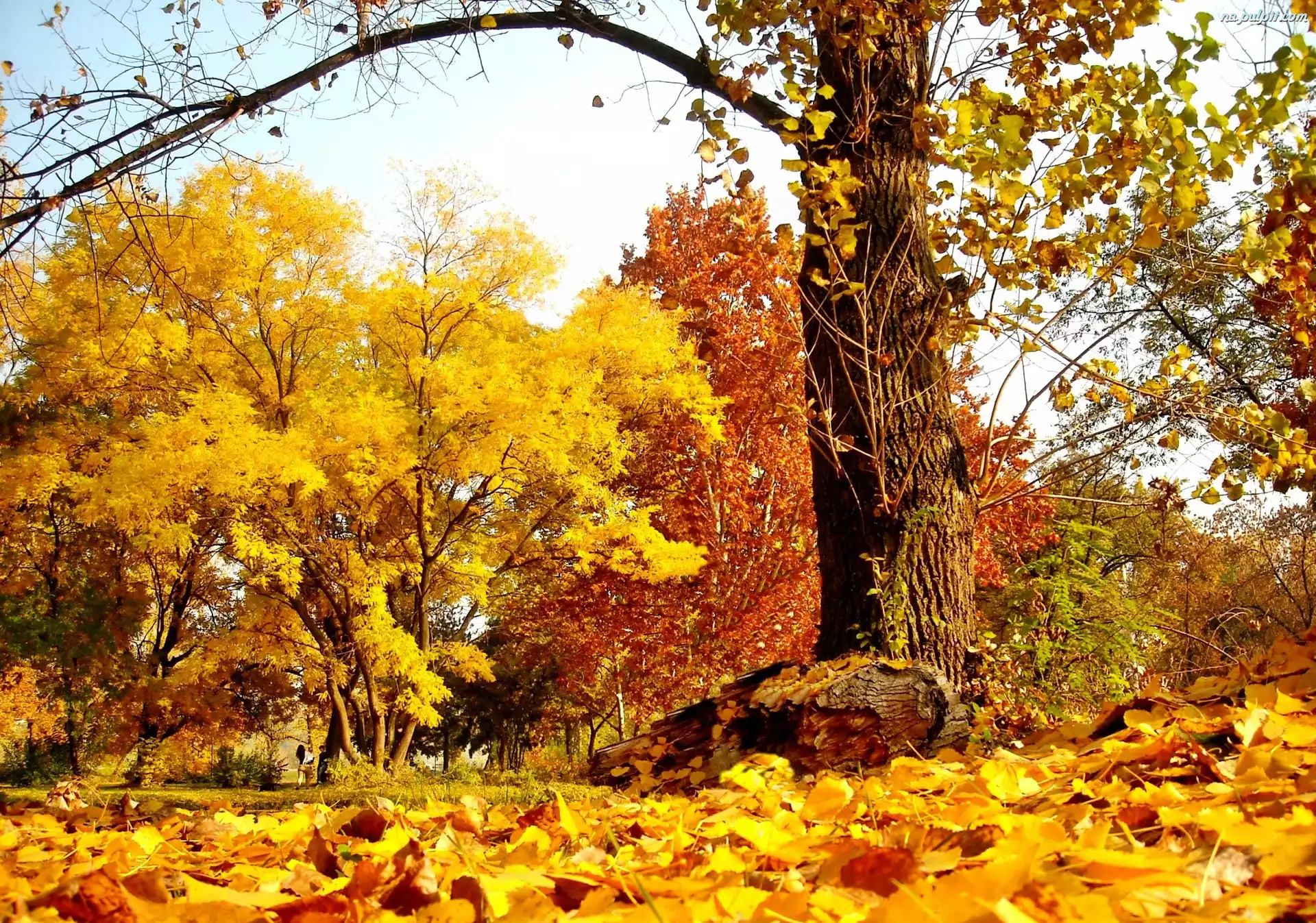 Jesień, Drzewa, Kolorowe, Park, Liście