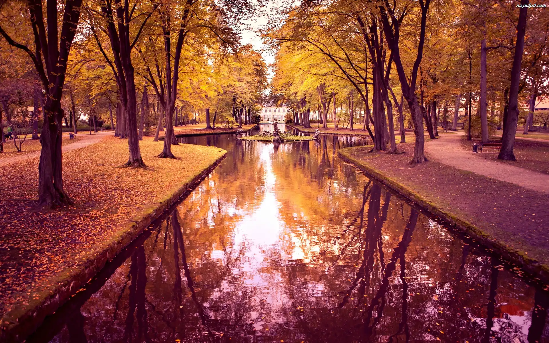 Jesień, Wodny, Zbiornik, Park, Alejki Na Pulpit