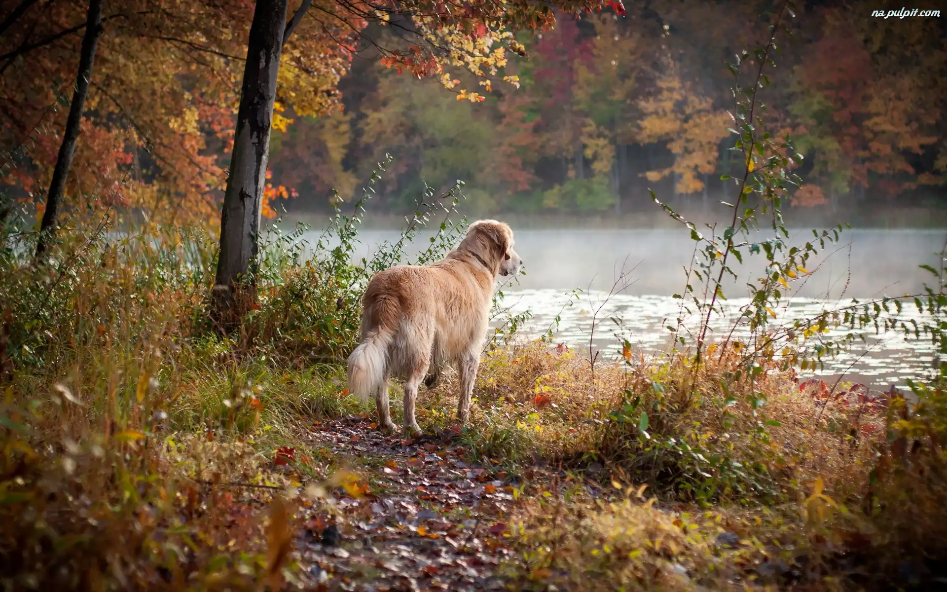 Jesień, Rzeka, Pies, Las Na Pulpit