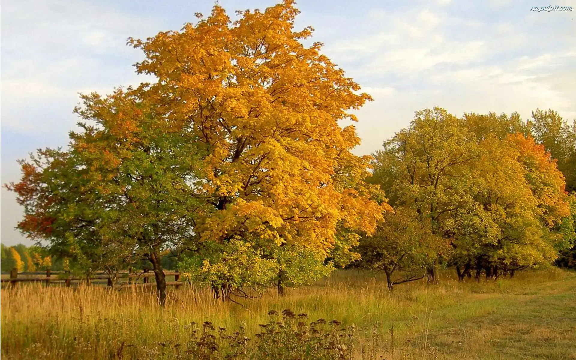 Jesień, Łąka, Pola, Drzewa