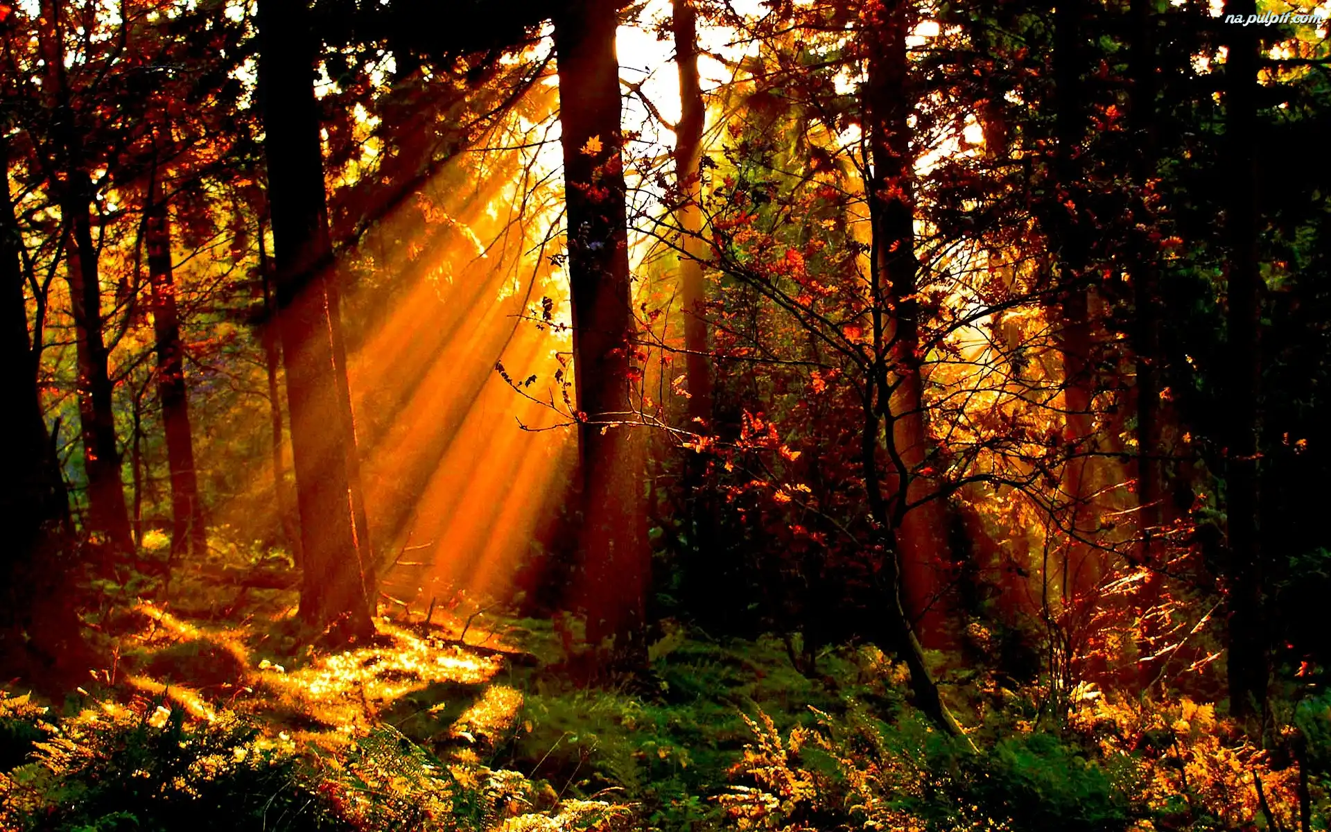 Jesień, Las, Drzewa, Promienie Słońca Na Pulpit