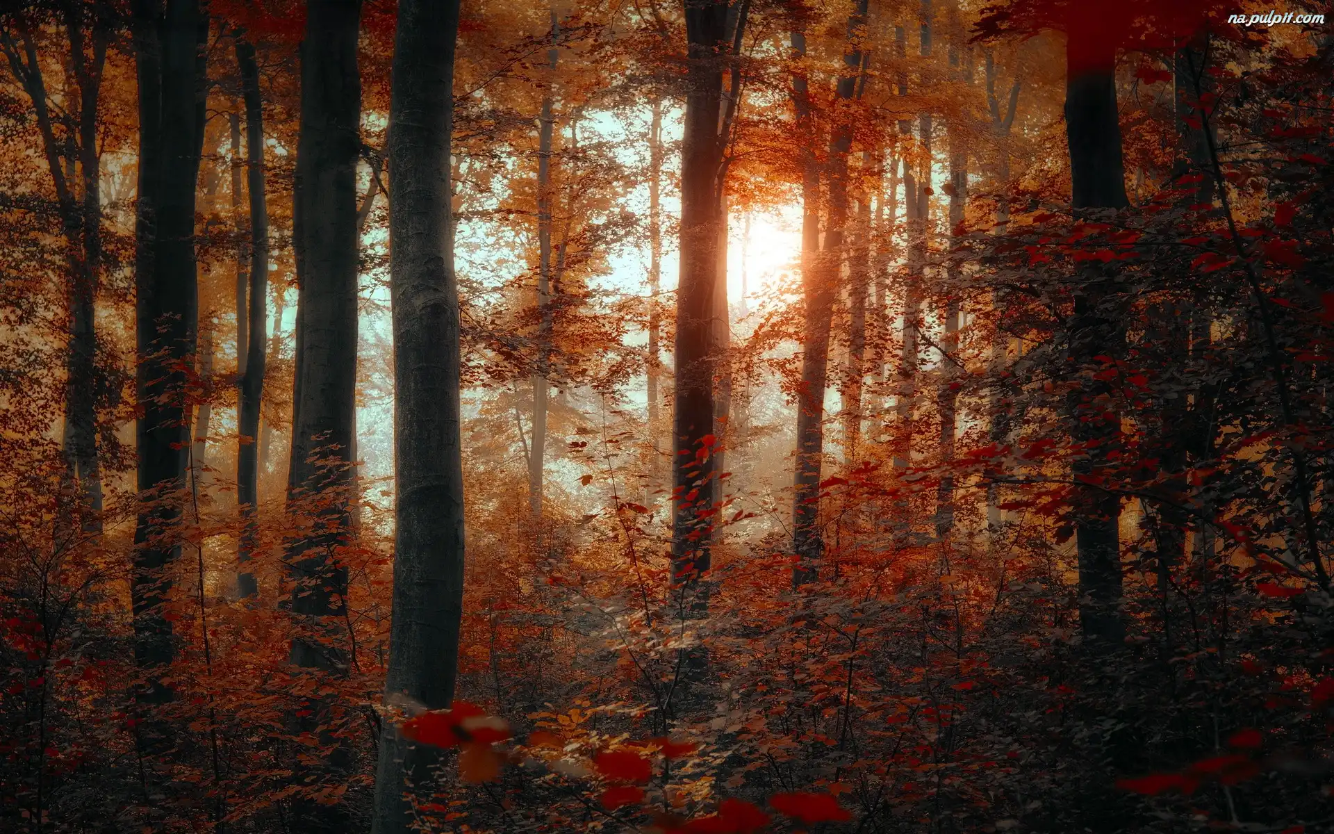 Jesień, Światło, Przebijające, Las Na Pulpit