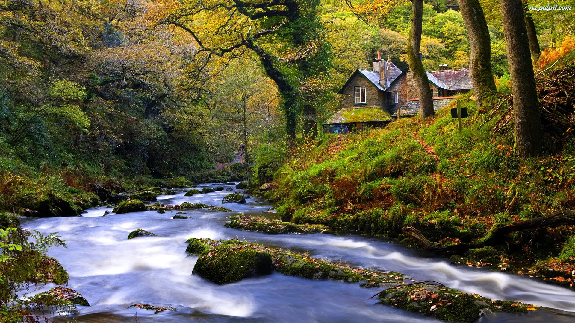Jesień, Las, Rzeczka, Domek Na Pulpit