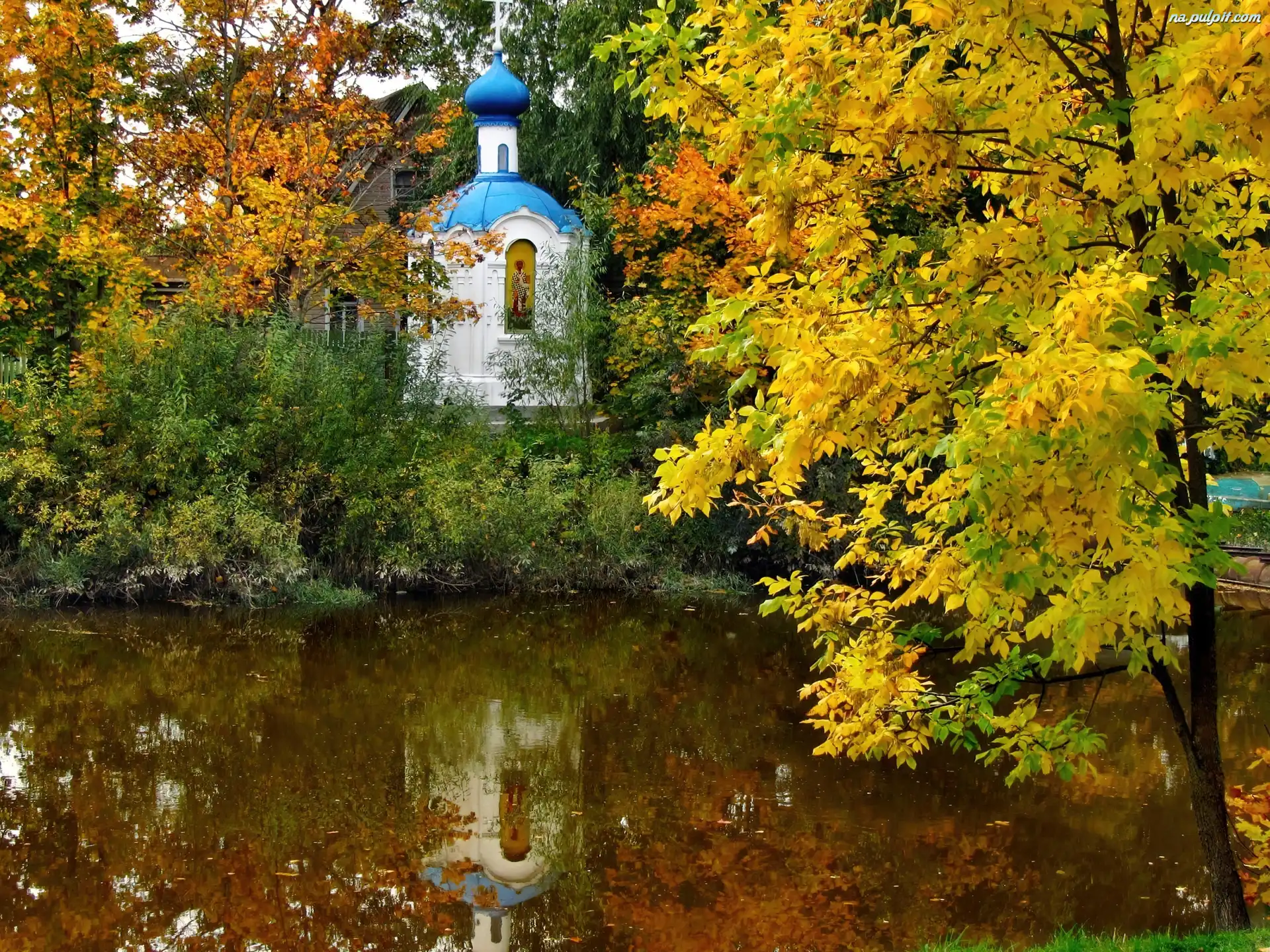 Jesień, Drzewa, Rzeka, Kapliczka Na Pulpit