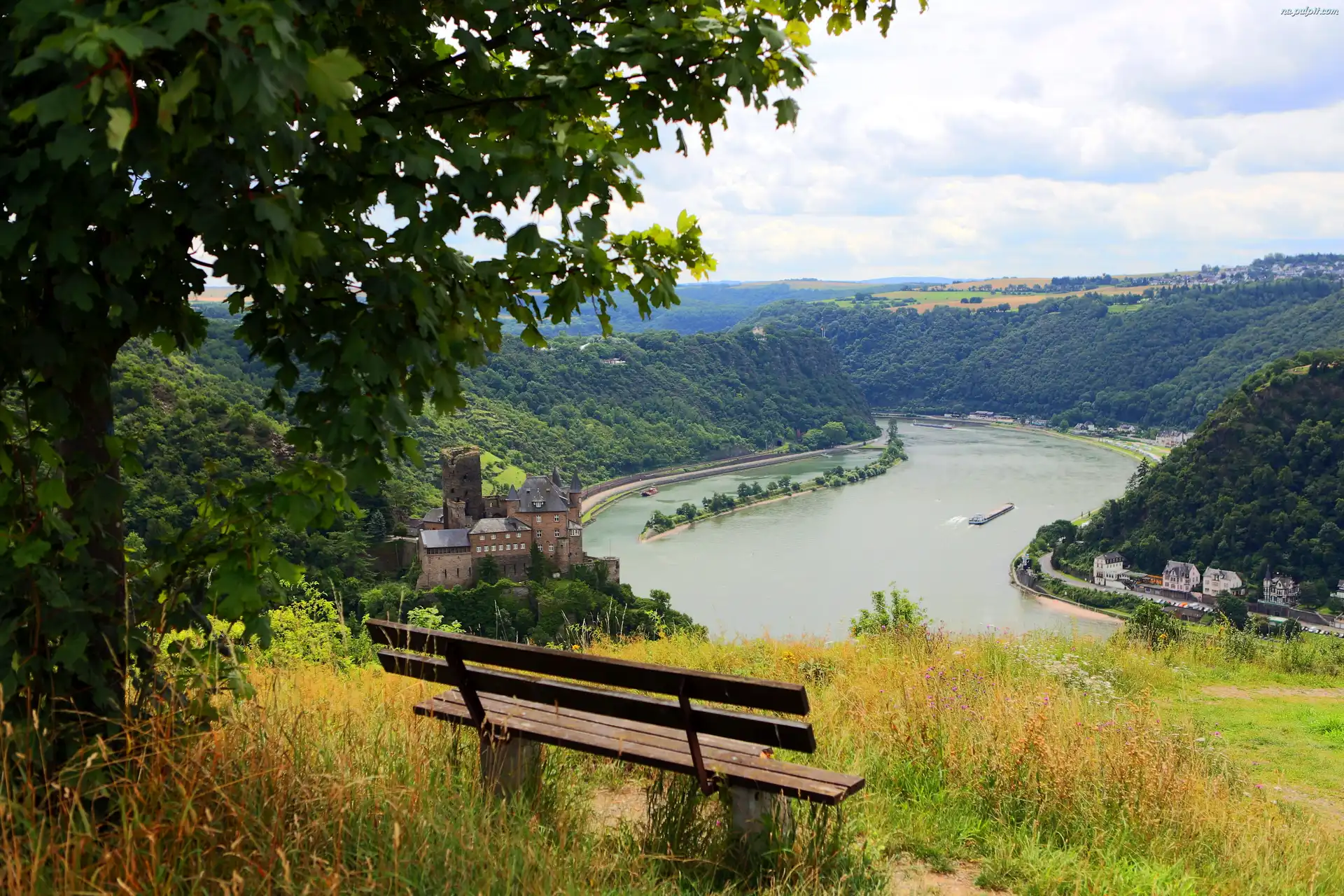 Jesień, Lasy, Góry, Rzeka, Ławeczka Na Pulpit