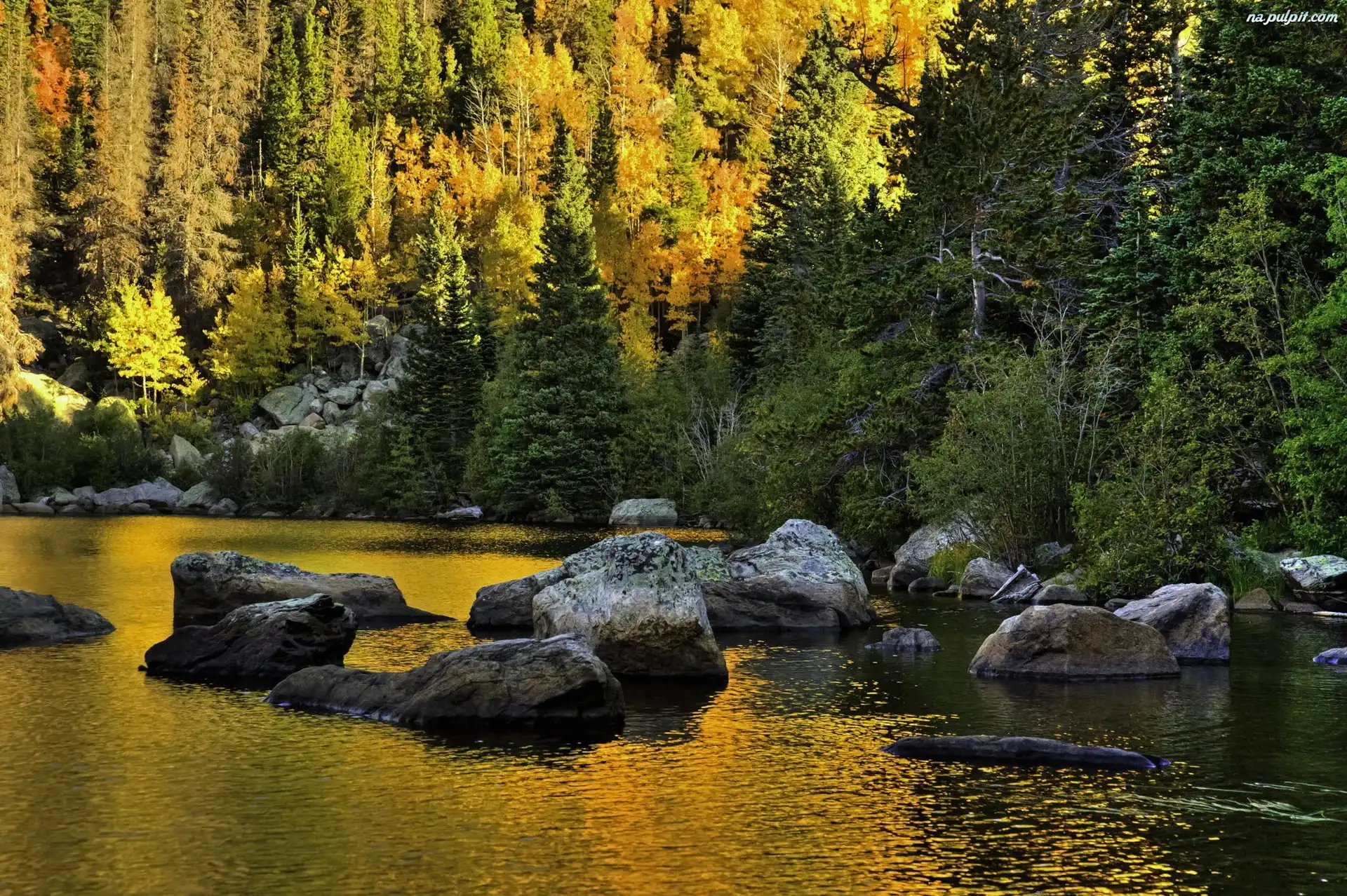 Jesień, Lasy, Góry, Rzeka, Kamienie