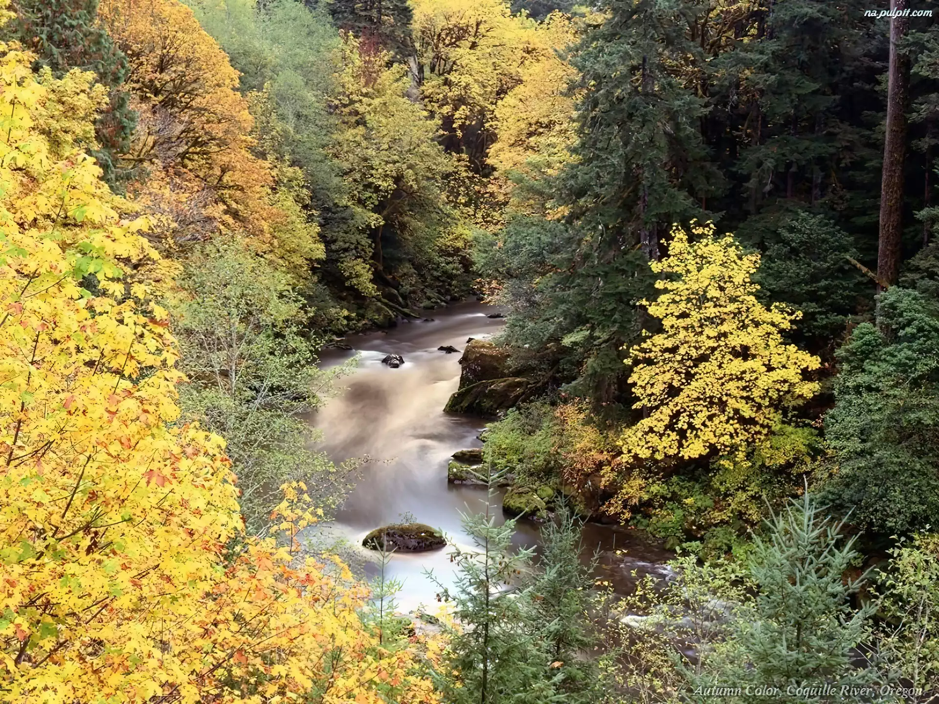 Rzeka, Jesień, Las Na Pulpit