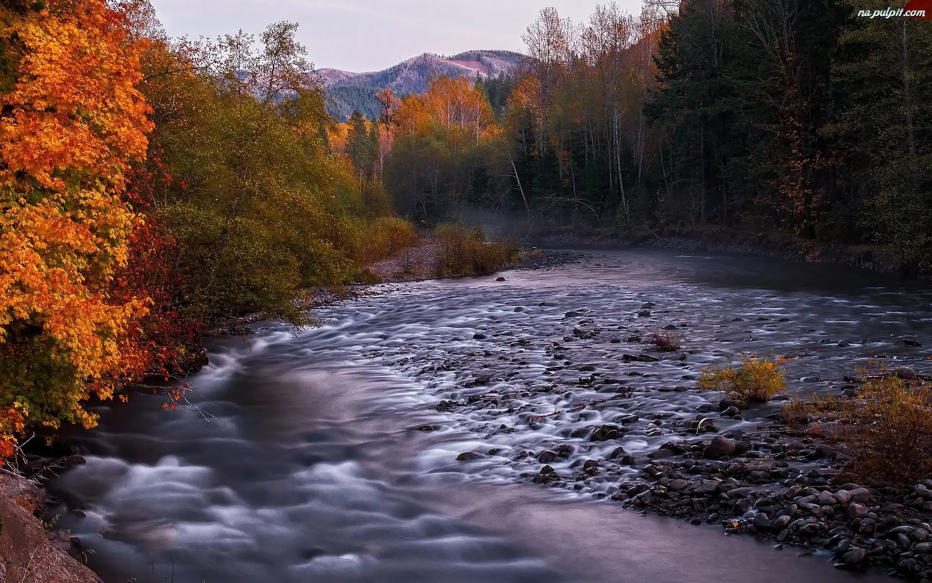 Jesień, Lasy, Rzeka, Góry Na Pulpit