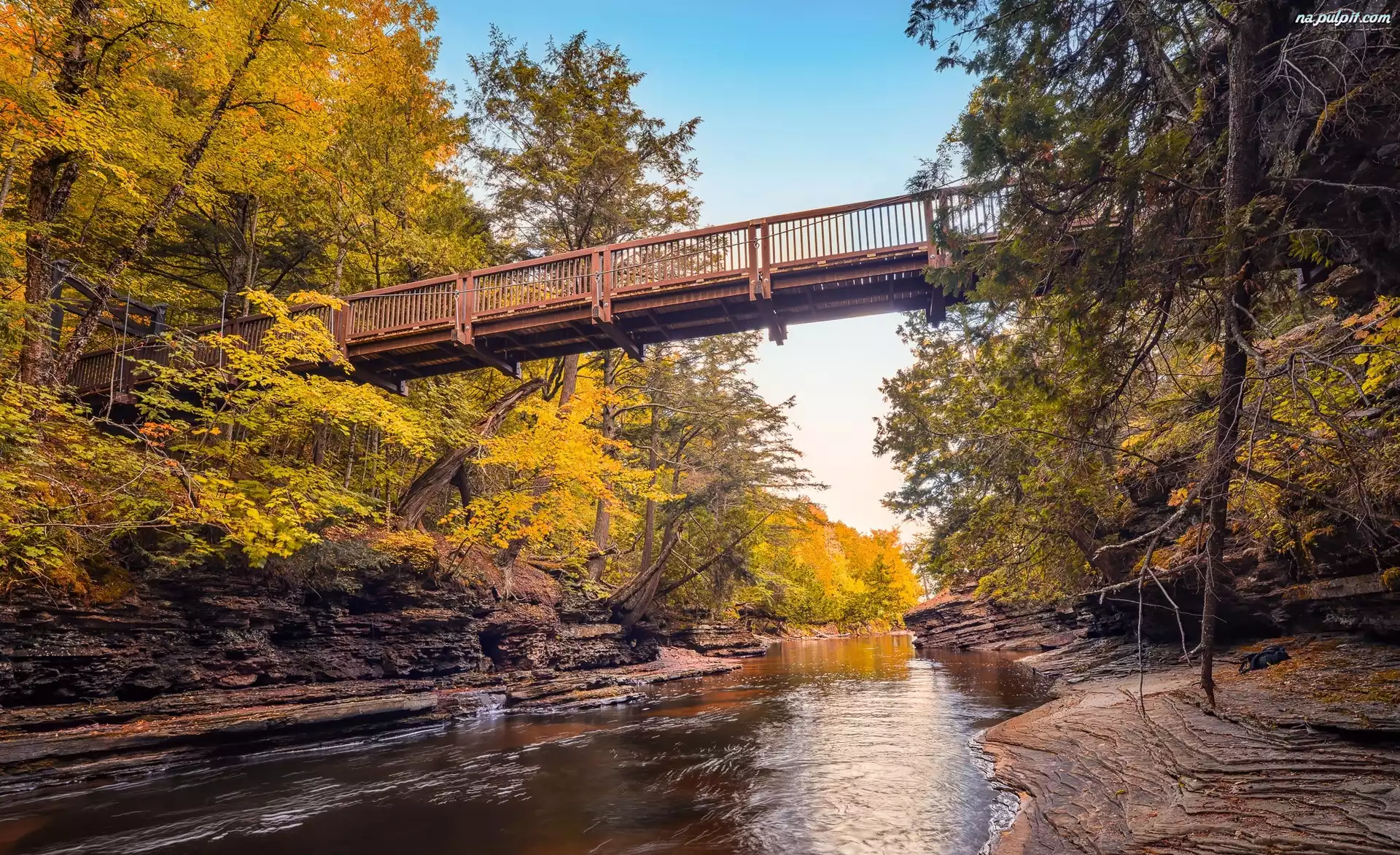 Jesień, Most, Presque Isle River, Stany Zjednoczone, Michigan, Rzeka, Drzewa Na Pulpit