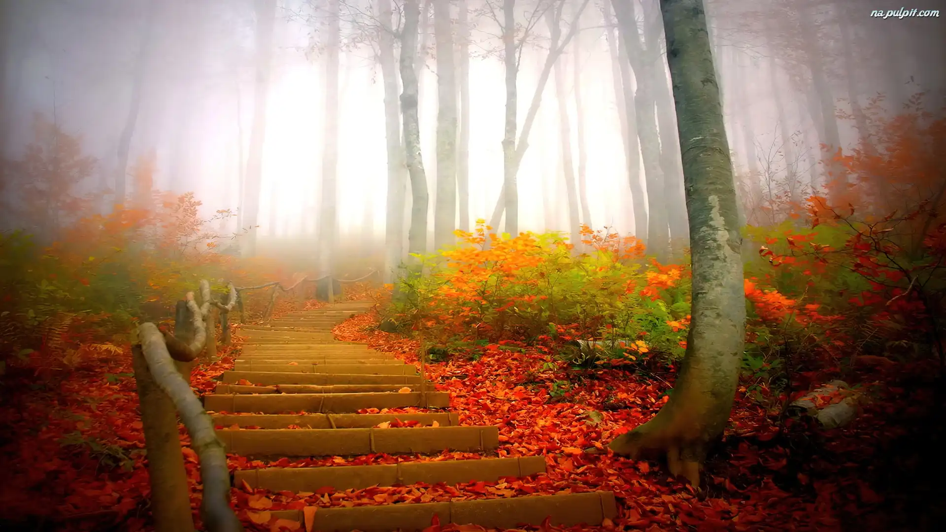Jesień, Liście, Schody, Drzewa Na Pulpit