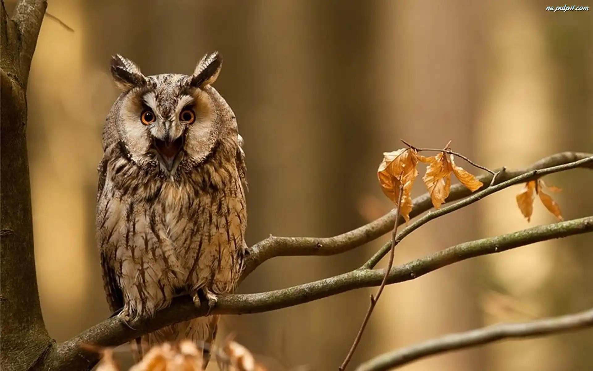 Jesień, Drzewo, Sowa, Las Na Pulpit