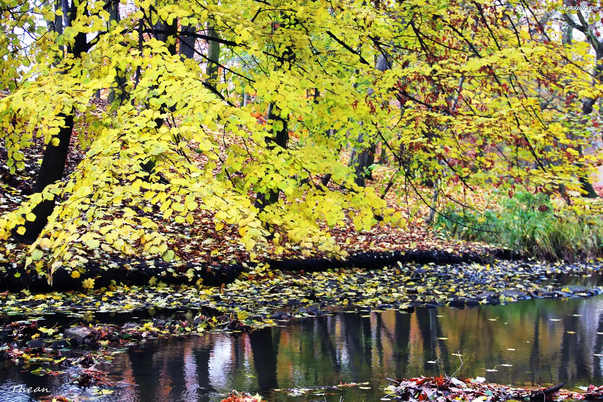 Jesień, Żółte, Odbicie, Strumyk, Liście Na Pulpit