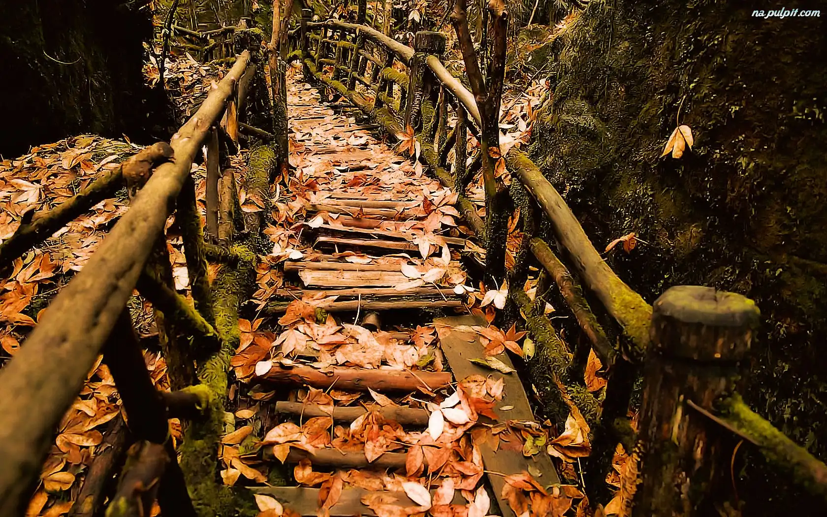Jesień, Schody, Widok, Liście Na Pulpit