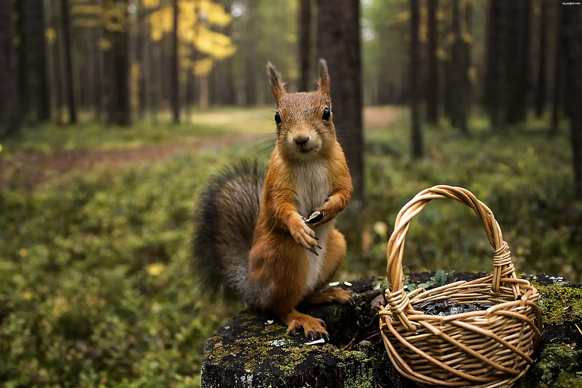 Jesień, Las, Wiewiórka, Koszyk