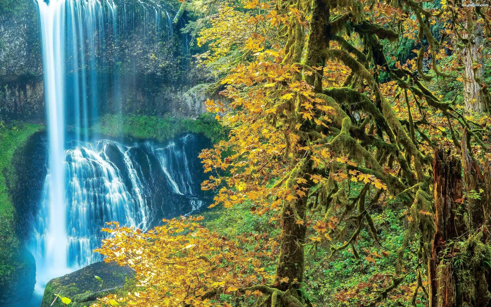 Jesień, Kolorowe, Skały, Wodospad, Drzewa