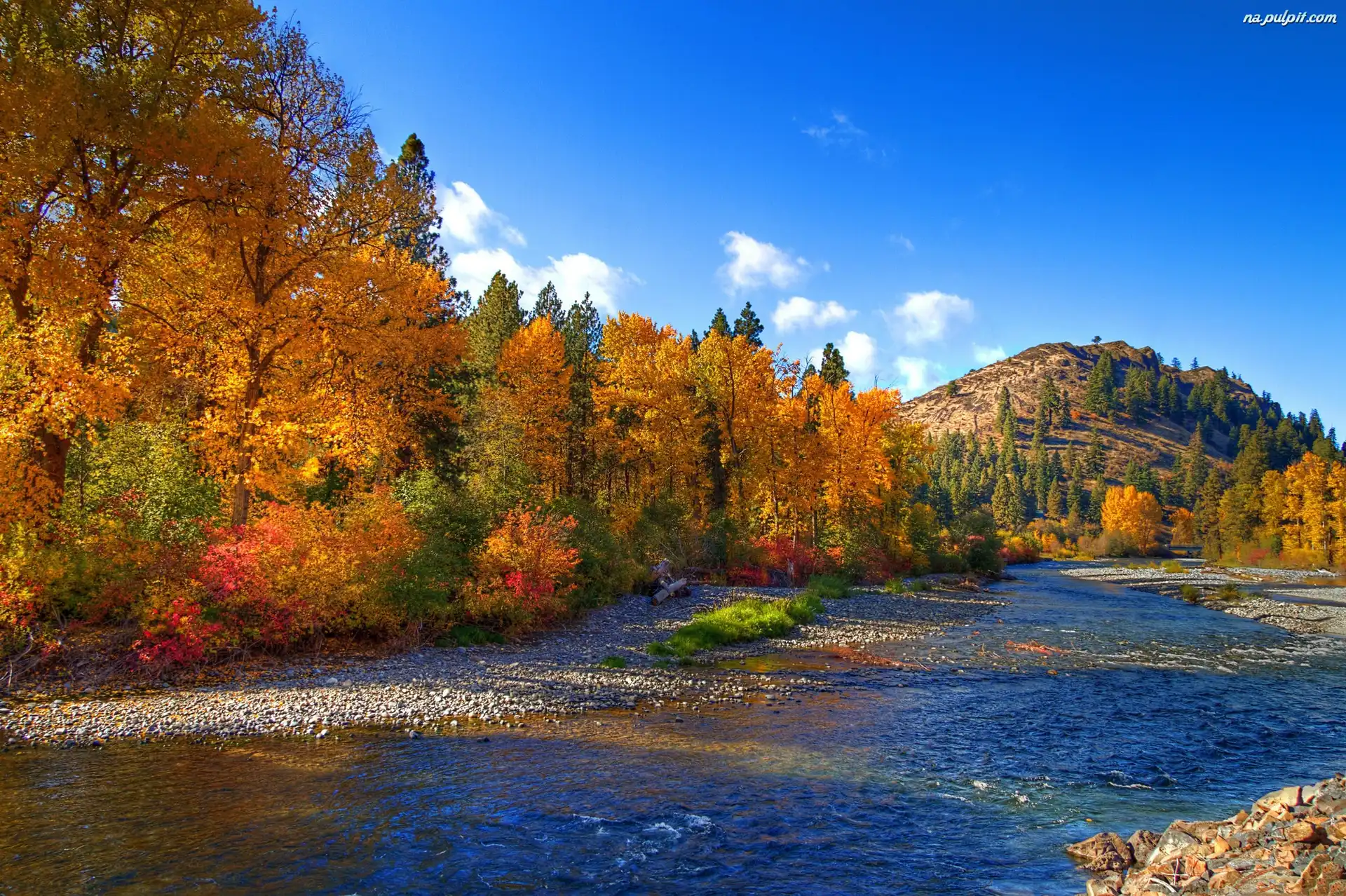 Wzgórze, Jesień, Rzeka Na Pulpit