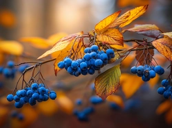 Liście, Niebieskie, Jagody, Jesienne, Owoce, Grafika AI
