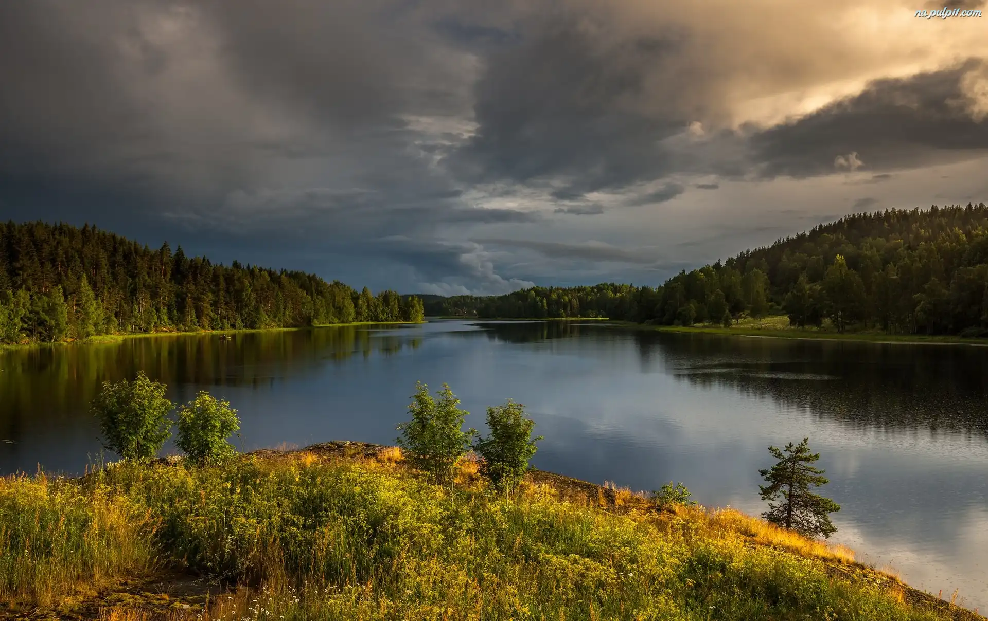 Lasy, Obszar Lake District, Kraina Jezior, Niebo, Chmury, Kumbria, Jezioro Windermere, Anglia Na Pulpit |