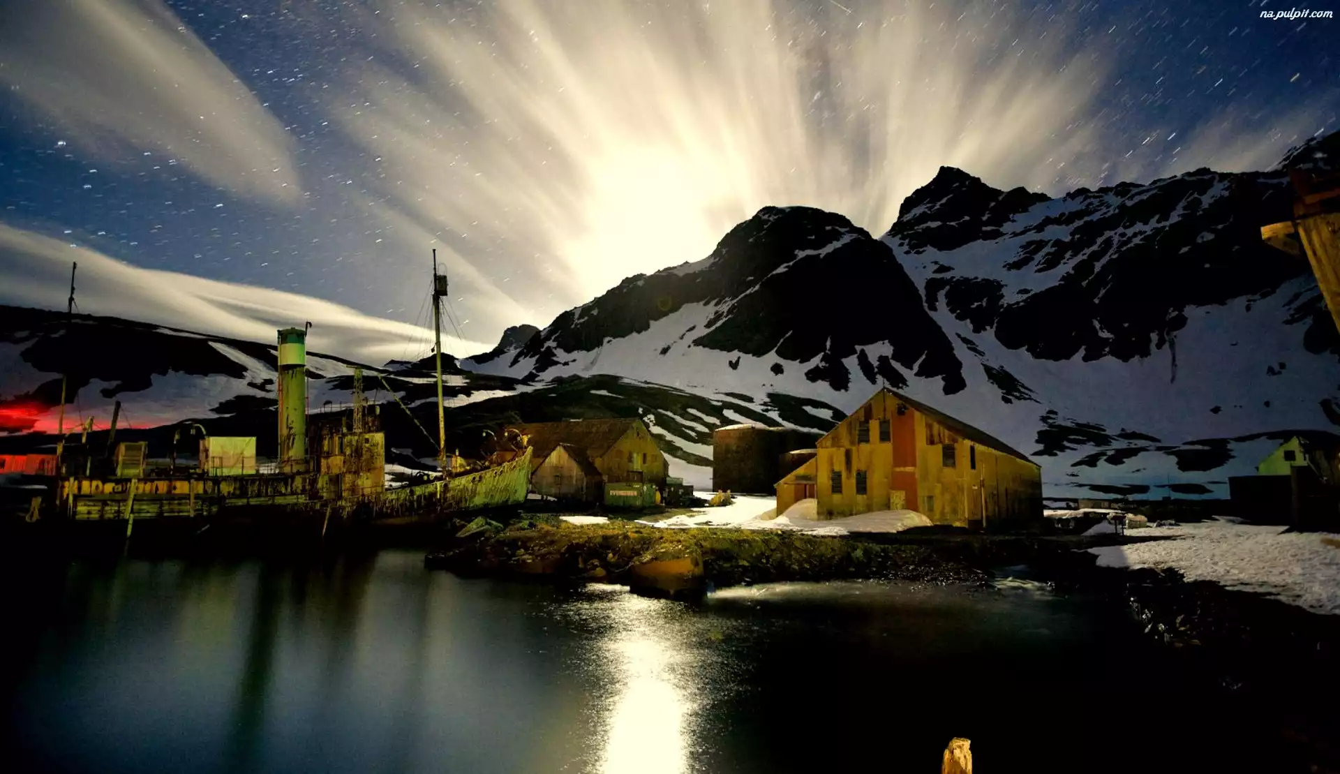 Jeziora, Domy, Zima, Przebijające, Góry, Światło Na Pulpit