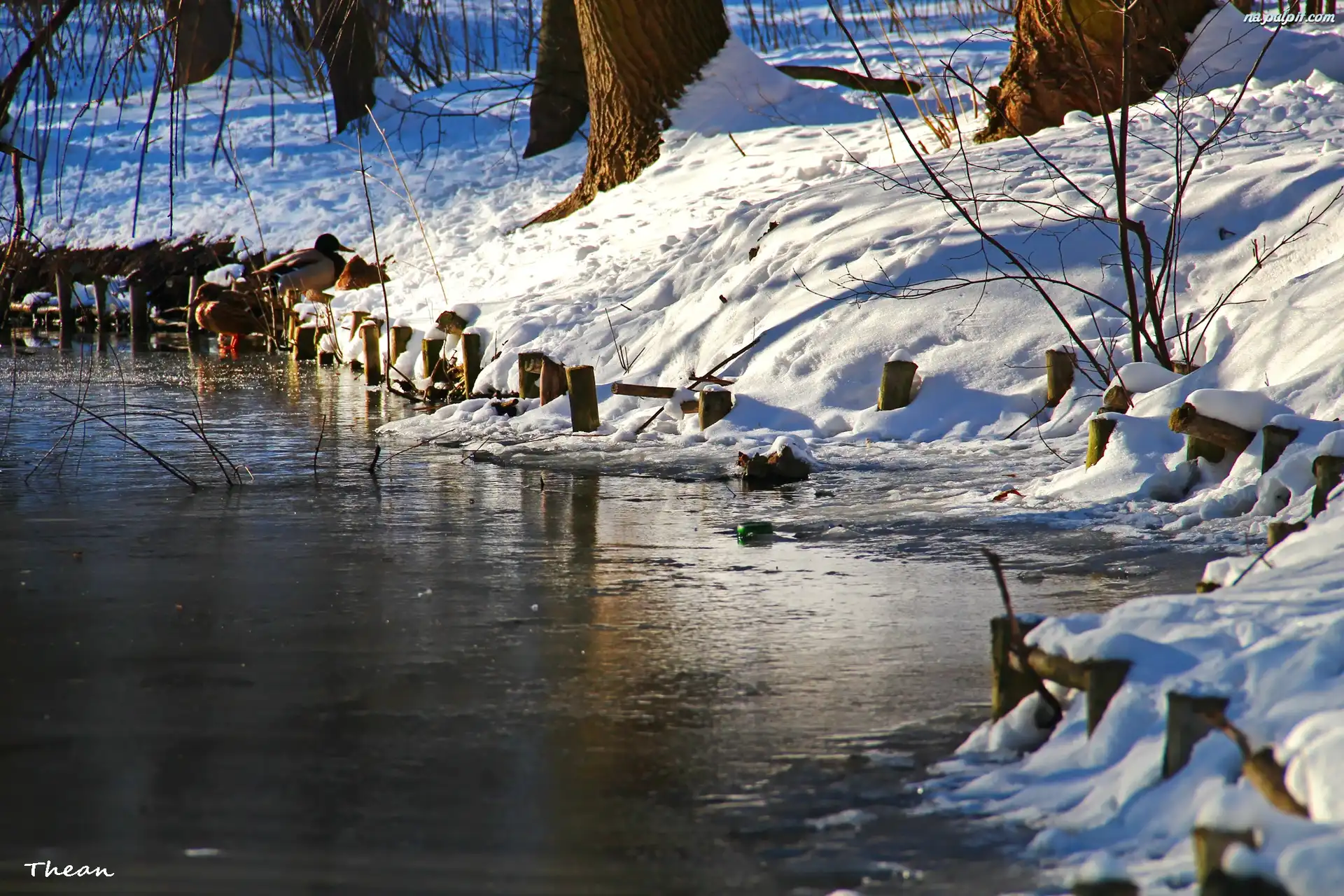 Kołki, Jeziora, Drewniane, Zima, Śnieg, Brzeg, Drzewa Na Pulpit