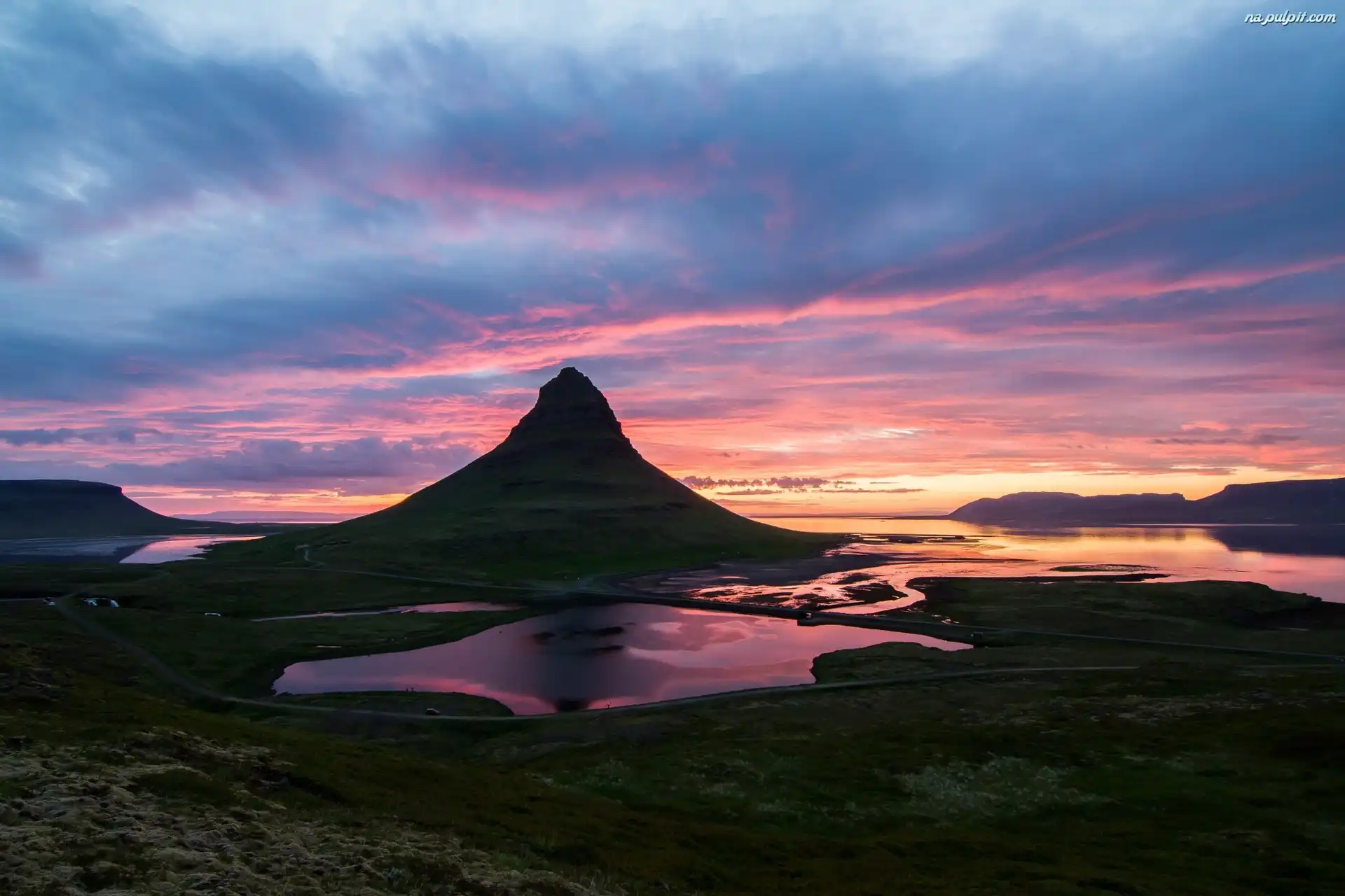 Jeziora, Słońca, Zachód, Góra Na Pulpit