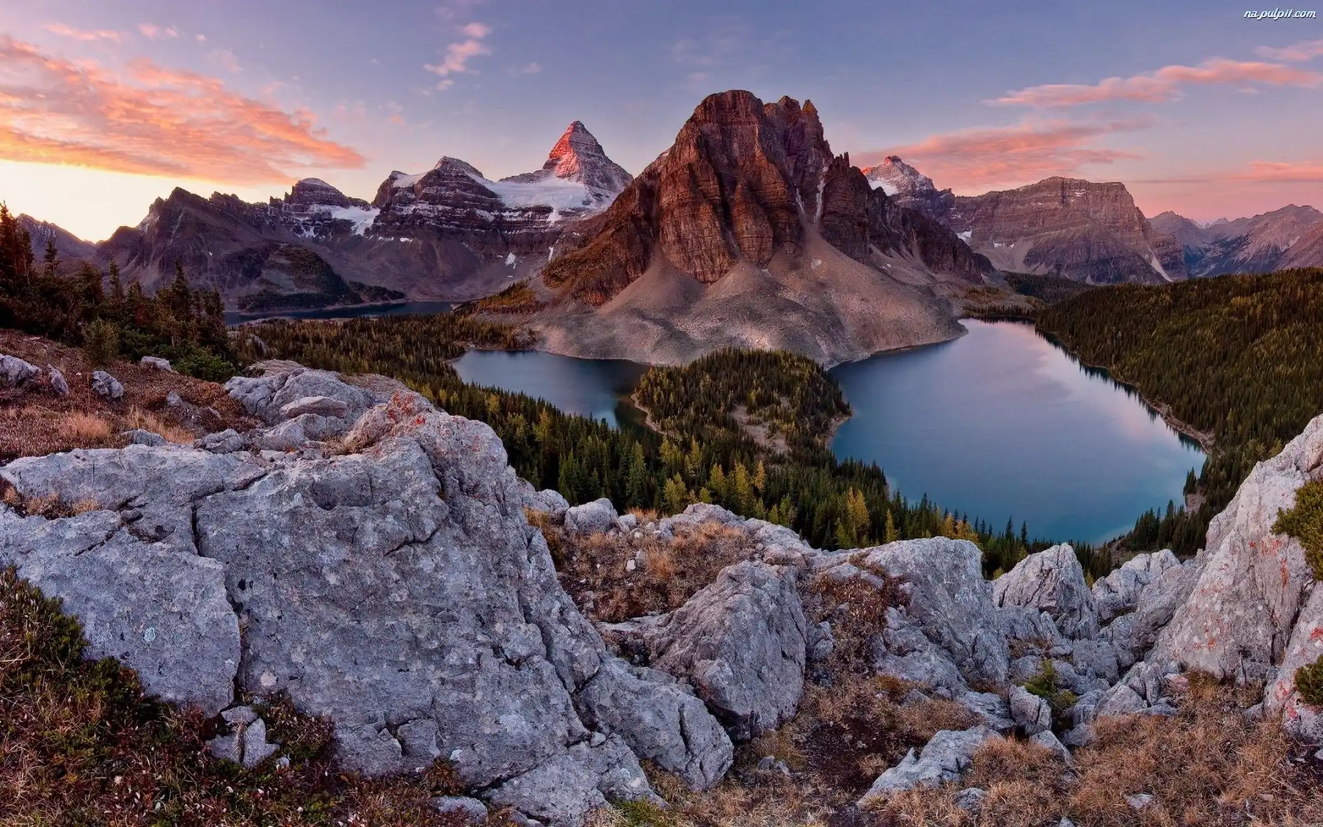 Jeziora, Słońca, Zachód, Skały Na Pulpit
