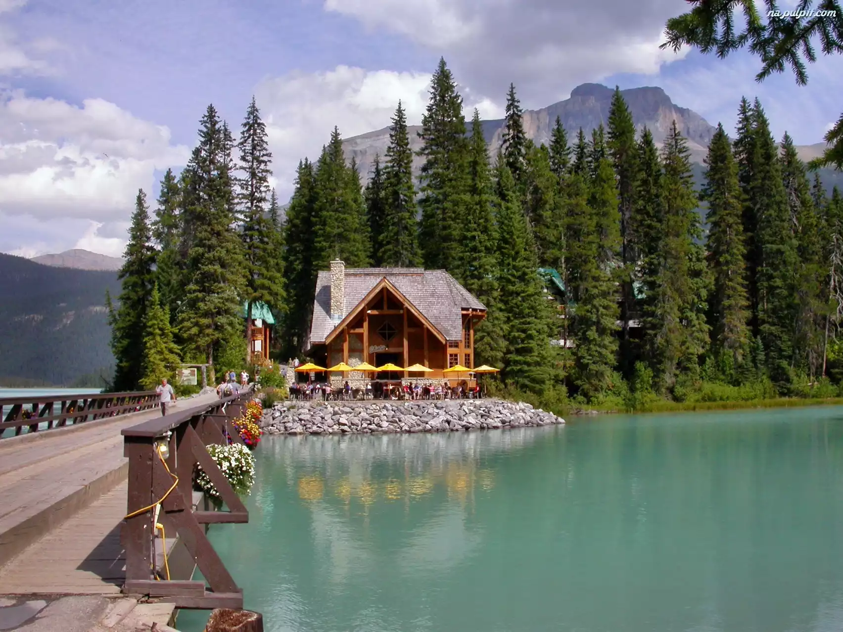 Jeziorem, Restauracja, Most, Drewniany, Nad Na Pulpit