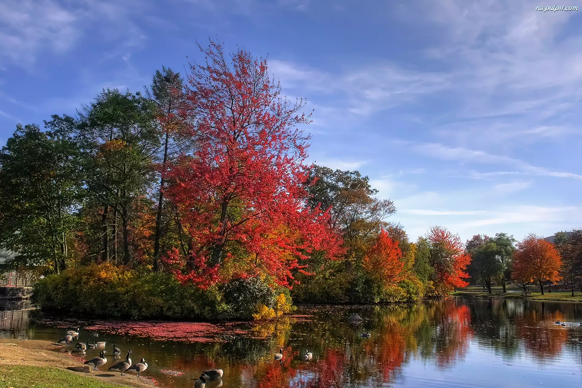 Jeziorko, Kolorowe, Jesień, Drzewa Na Pulpit